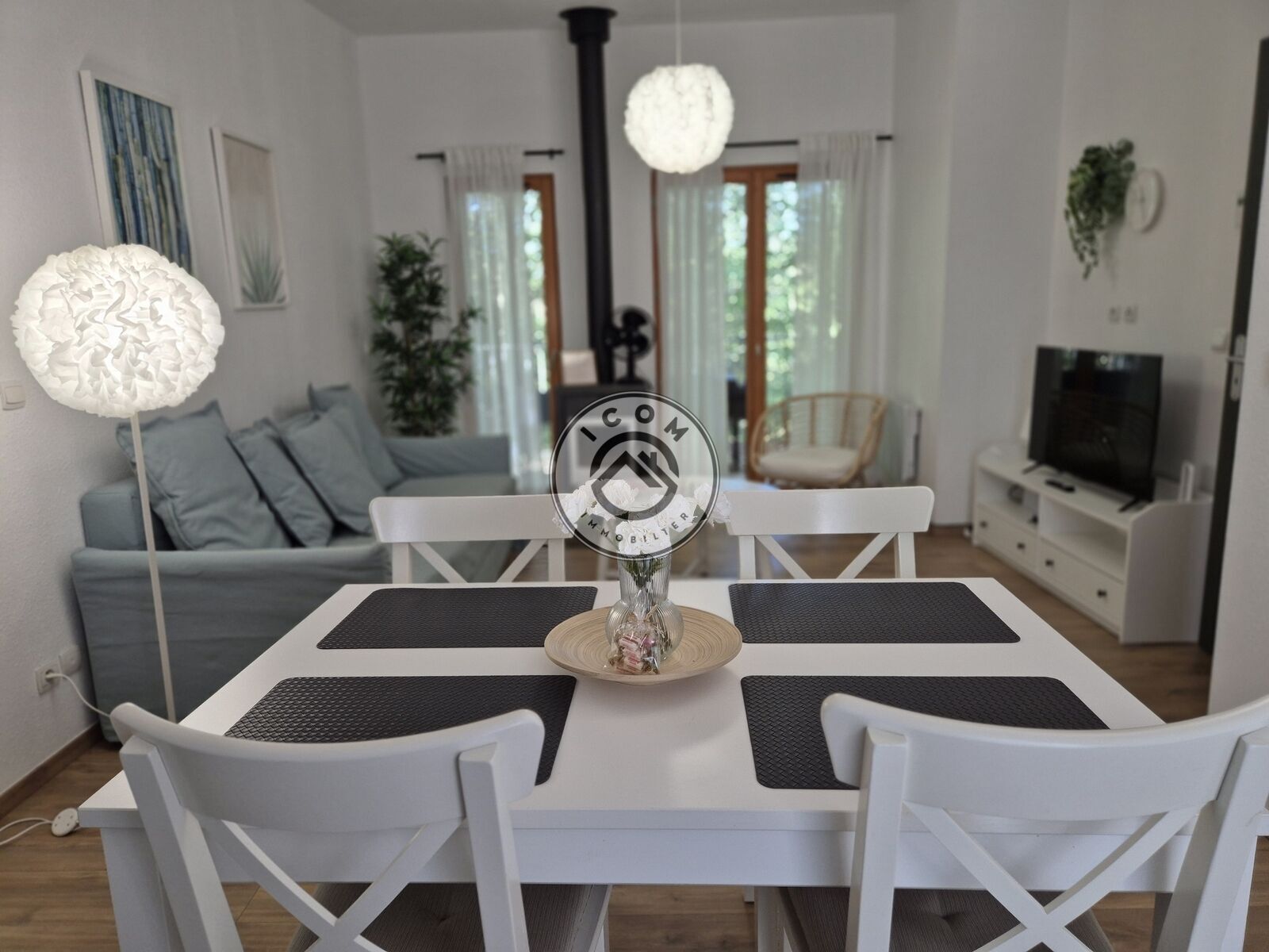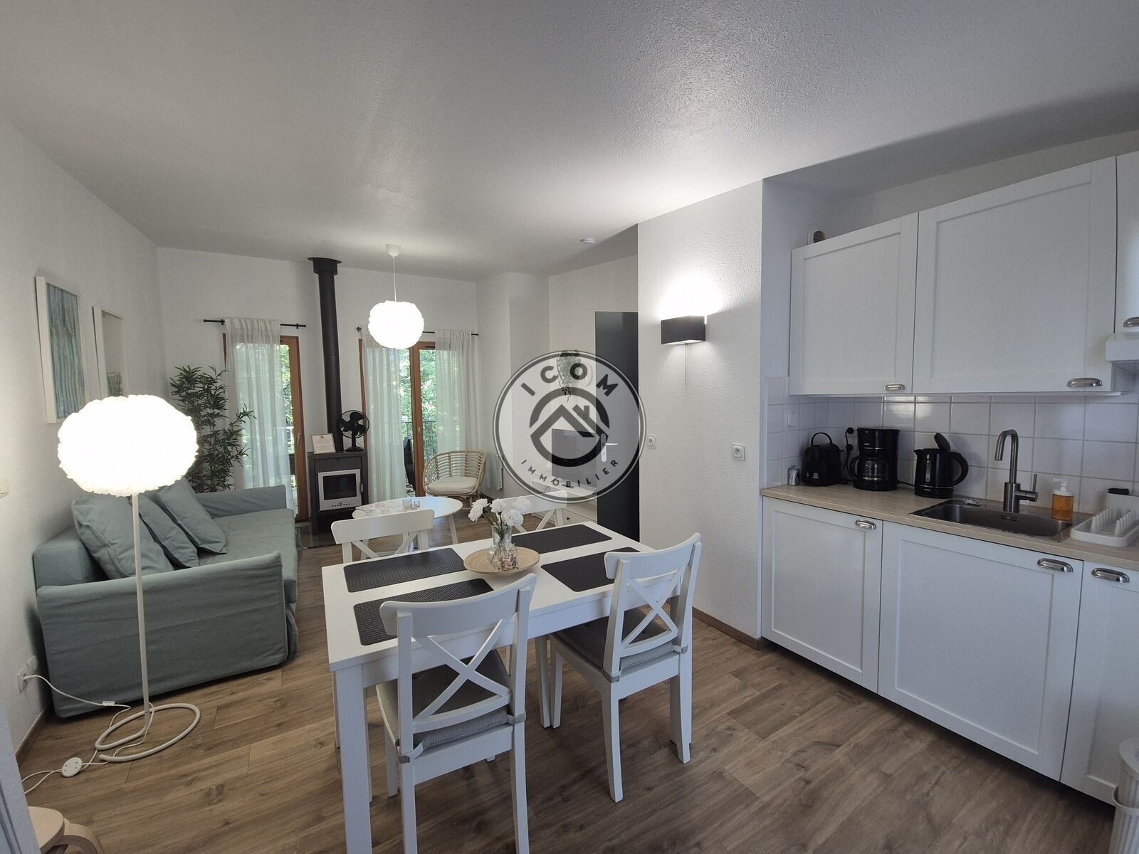 Séjour 23 m² avec poêle à bois + canapé convertible