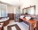 L'entrée conduit vers une spacieuse pièce de vie qui se compose d’une cuisine semi-ouverte, d’un salon avec un poêle à bois et d’un espace salle à manger lumineux. Les baies vitrées prolongent la vie intérieure vers le jardin, où la piscine, la terrasse et la cuisine d’été créent un cadre de détente et de convivialité.