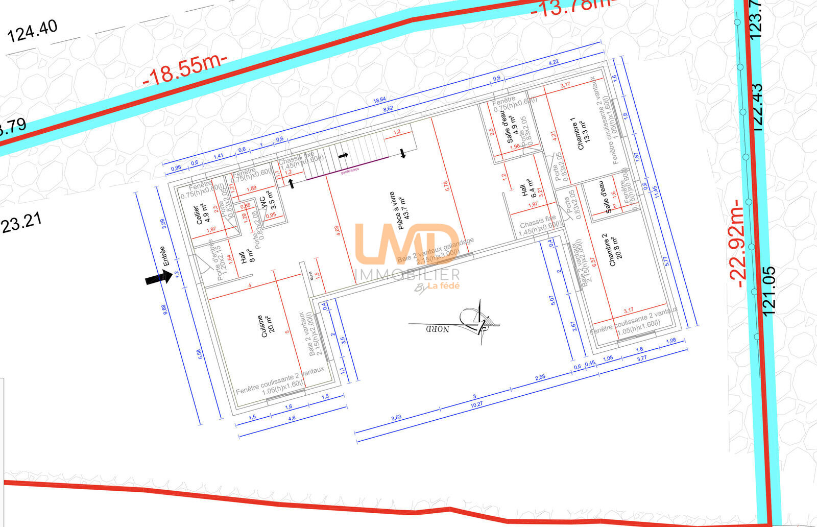 Terrain de 1100 m2 avec les fondations d'une maison de 164 m2 (174 m2 plancher) déjà posées par un constructeur professionnel et garanties par une assurance décennale.