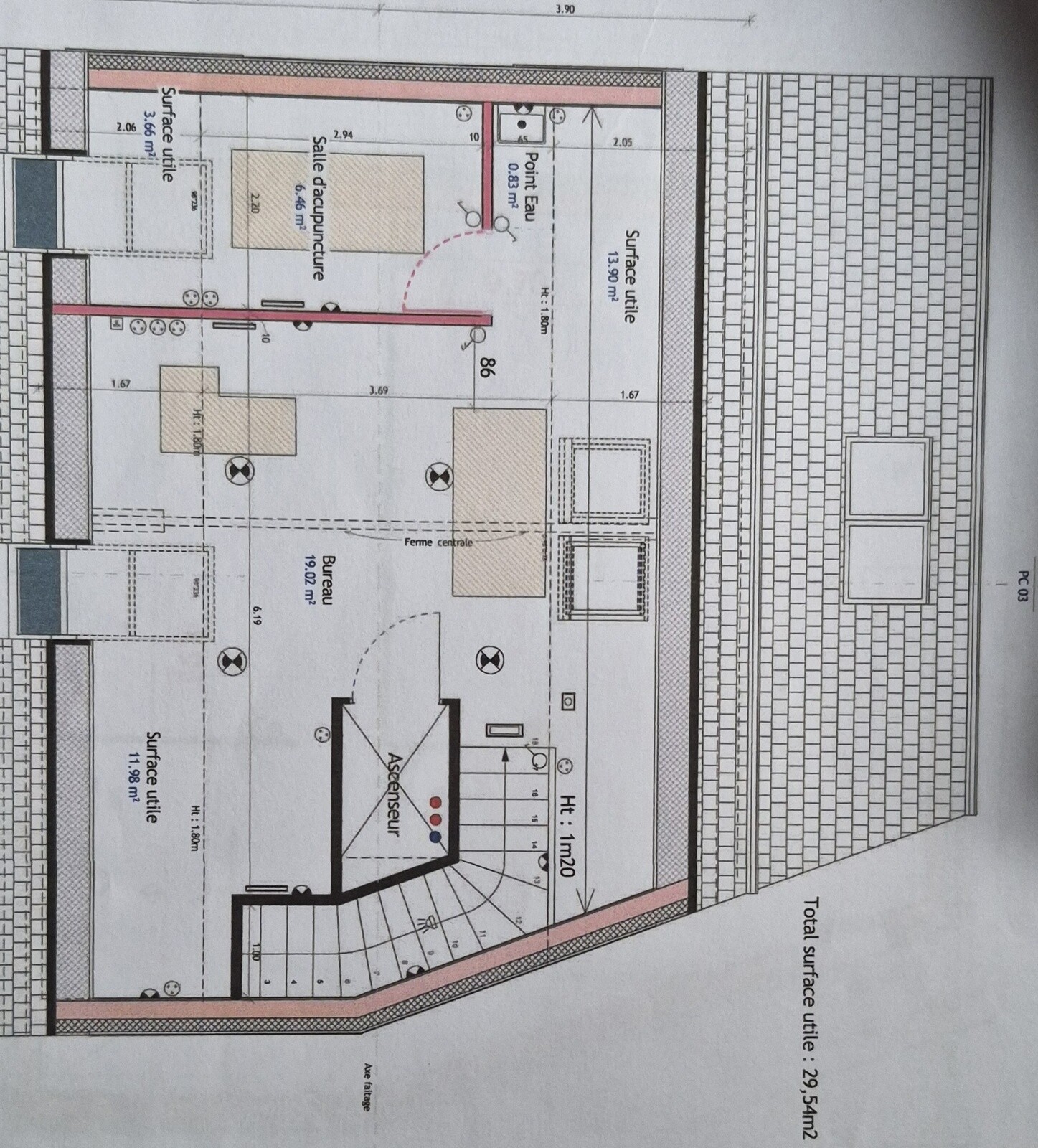 Les combles aménagés comprennent deux pièces supplémentaires, également louées à un praticien