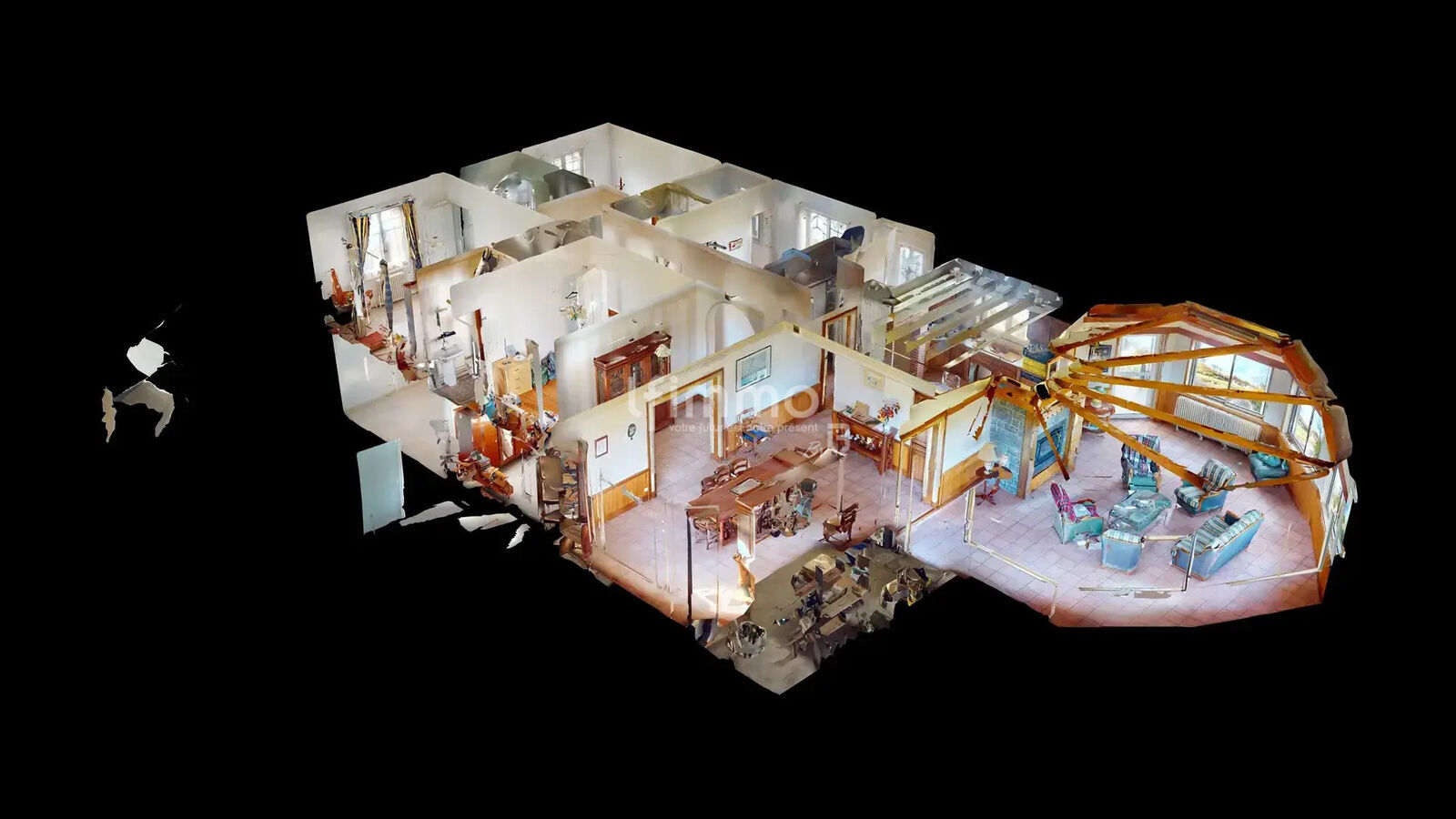 Bâtie sur un terrain arboré de 4 500 m², elle développe plus de 300 m² habitables sur deux niveaux, avec de grands volumes lumineux, plusieurs chambres, un vaste séjour et une cuisine indépendante.