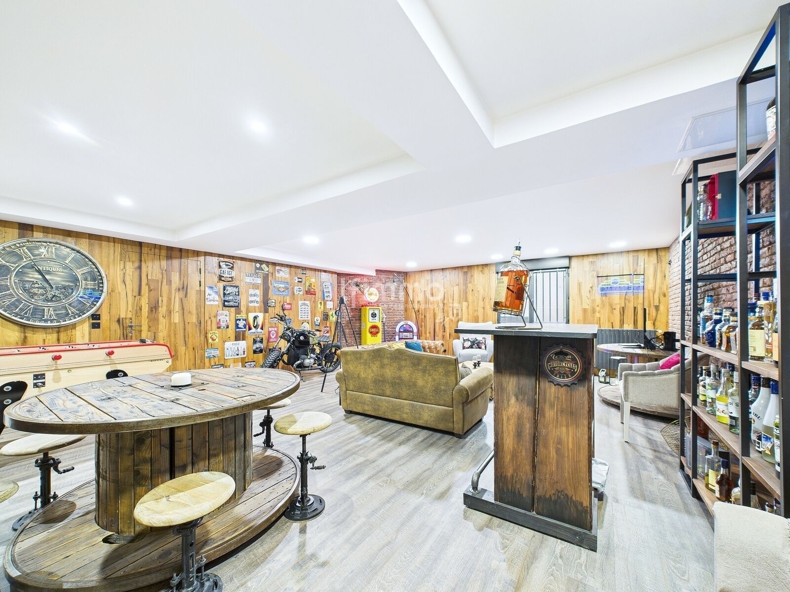 En rez-de-jardin, un niveau entièrement aménagé offre un espace bar et salle de jeux de 53 m2, parfait pour les moments conviviaux, ainsi qu’une buanderie de 16 m2, un garage de 3 m2 et une cave à vin de 11 m2.