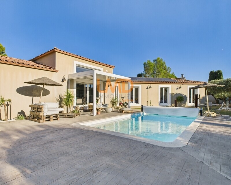 Je vous présente cette élégante maison de plain-pied située proche de Calvisson. Un univers raffiné de 139m2 sur un terrain de 1083m2 paysagé sans vis-à-vis.