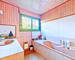 Toujours de plain-pied, la maison propose deux chambres, une salle de bain et un WC indépendant.