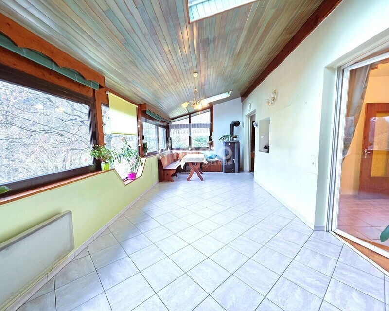 – poêle à pellets dans la véranda