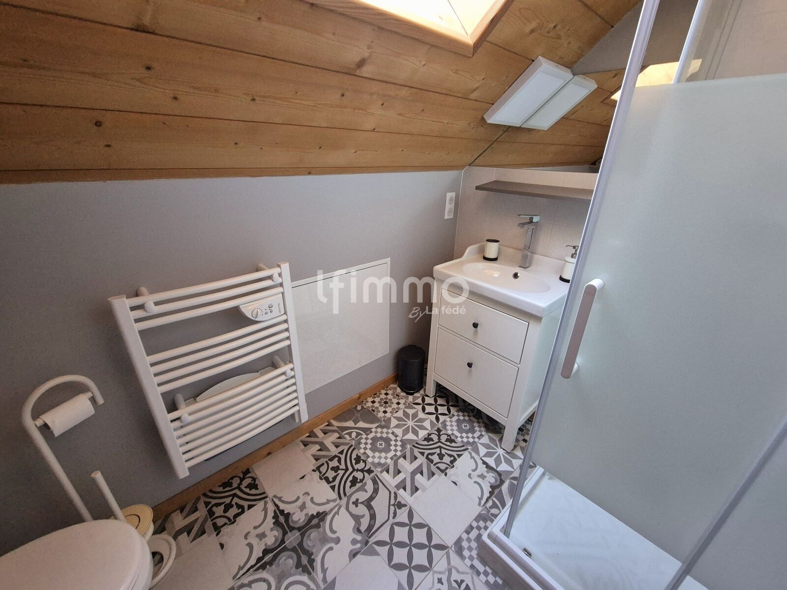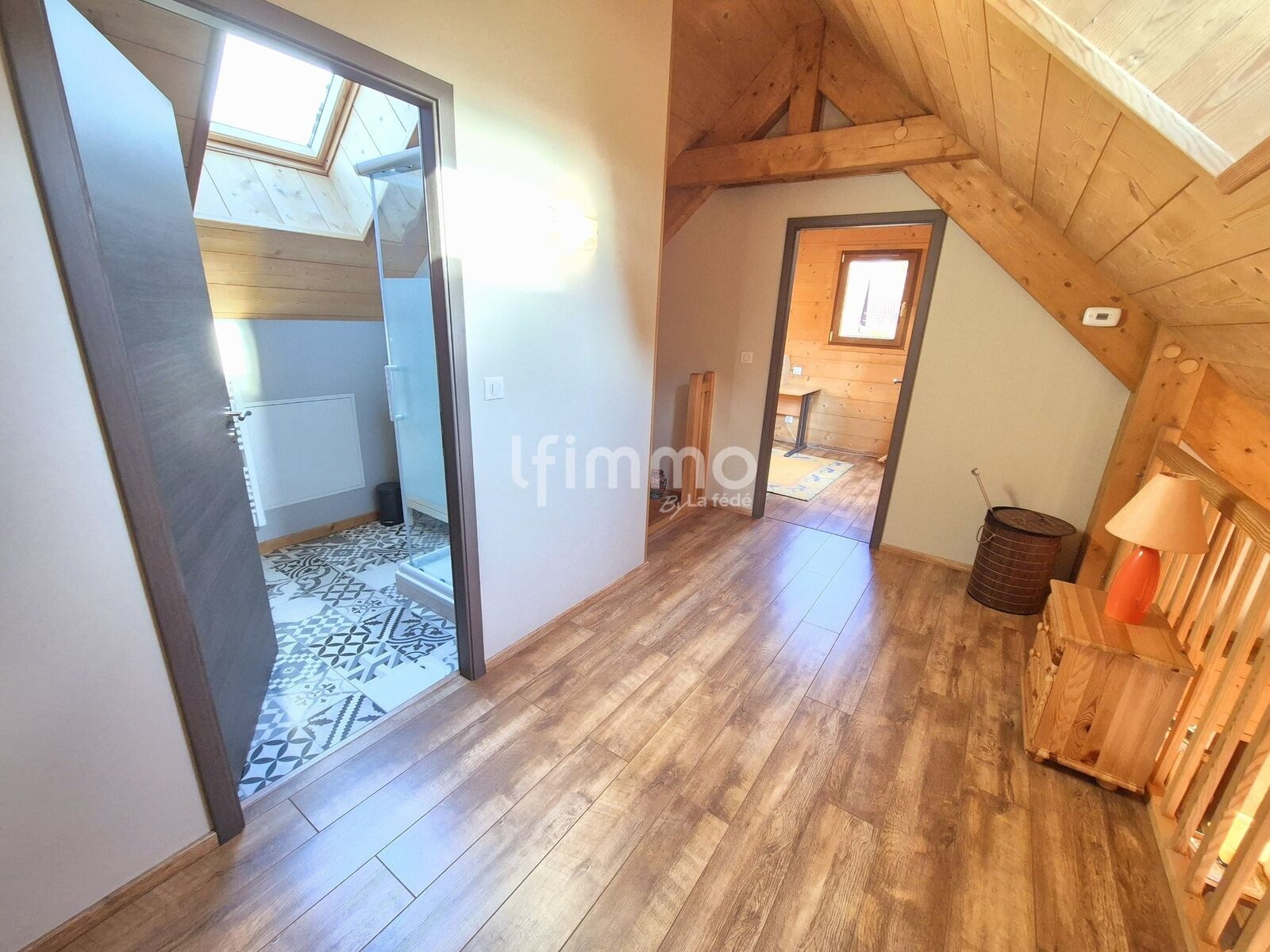 au 1er étage: une mezzanine de 7.48 m2 habitables (15.25 m2 au sol), une chambre de 9.03 m2 habitables (16.68 m2 au sol), une salle d'eau équipée d'une douche et d'un wc de 3.60 m2 habitables (5.98 m2 au sol) et une chambre de 9.70 m2 habitables (21.7 m2 au sol).