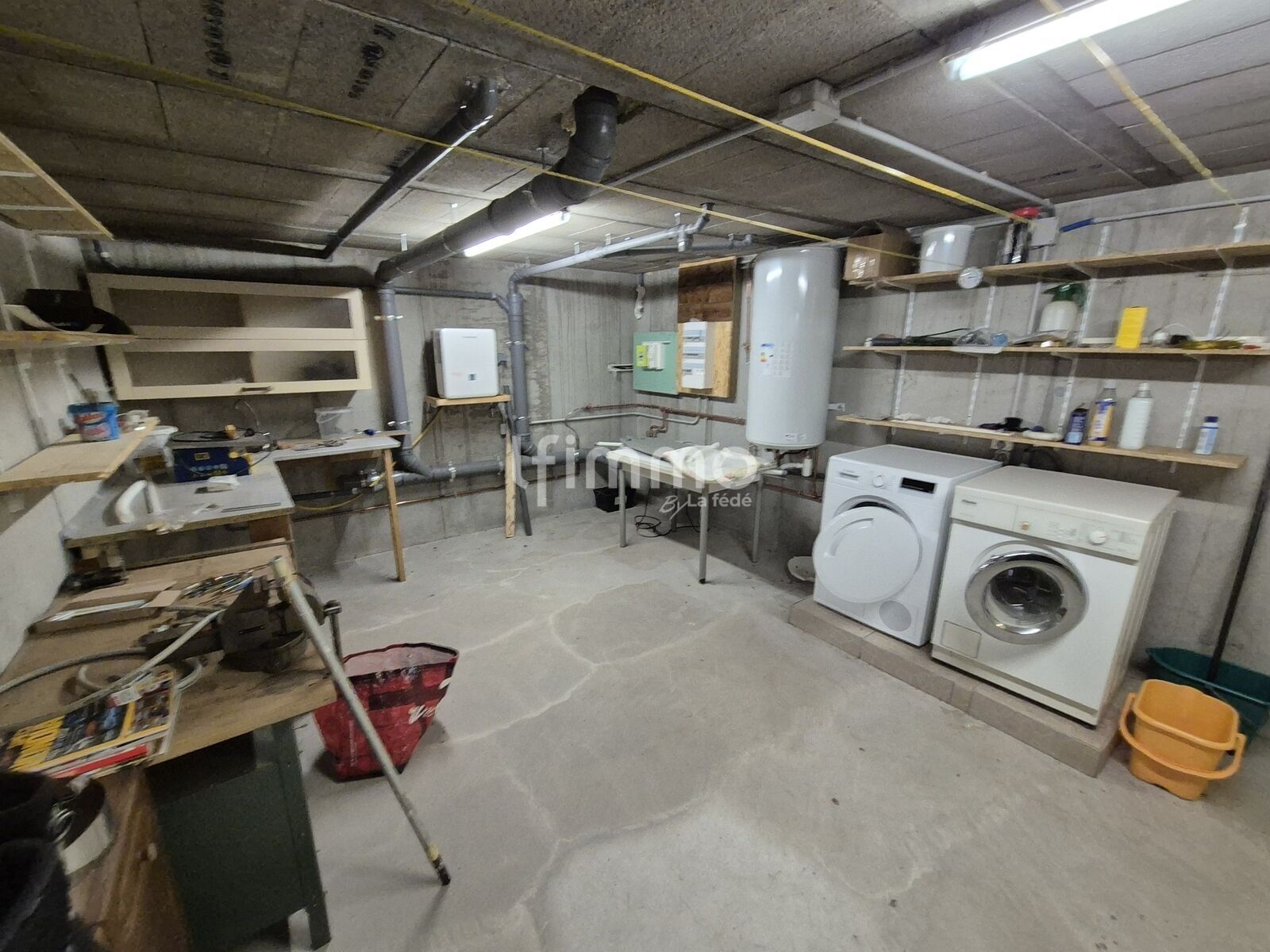 au sous sol: une cave/buanderie de 22.24 m2, une cave donnant sur l'extérieur de la maison de 34.86 m2, une cave à vin de 10.12 m2 et un espace de rangement de 28.06 m2.
