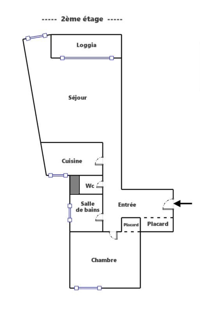 Il se compose d'une Entrée, Dressing, un Salon/Salle à manger lumineux ouvert sur la loggia, une Cuisine indépendante, une Chambre avec rangements, une Salle de bains, WC séparés.