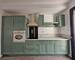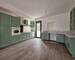 Cuisine ouverte de 14,63 m² avec parquet au sol, équipée d’un évier, four, plaque induction et nombreux rangements
