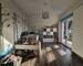 Le salon, baigné de lumière naturelle grâce à ses grandes baies vitrées, offre une vue apaisante sur l’extérieur.