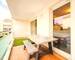 L’entrée mène soit vers un espace salon–cuisine lumineux ouvert sur la terrasse, soit vers un coin nuit totalement indépendant réunissant deux chambres, dont l’une bénéficie également d’un accès à la terrasse. Une salle de bain fonctionnelle, ainsi que des WC séparés complètent l’ensemble.