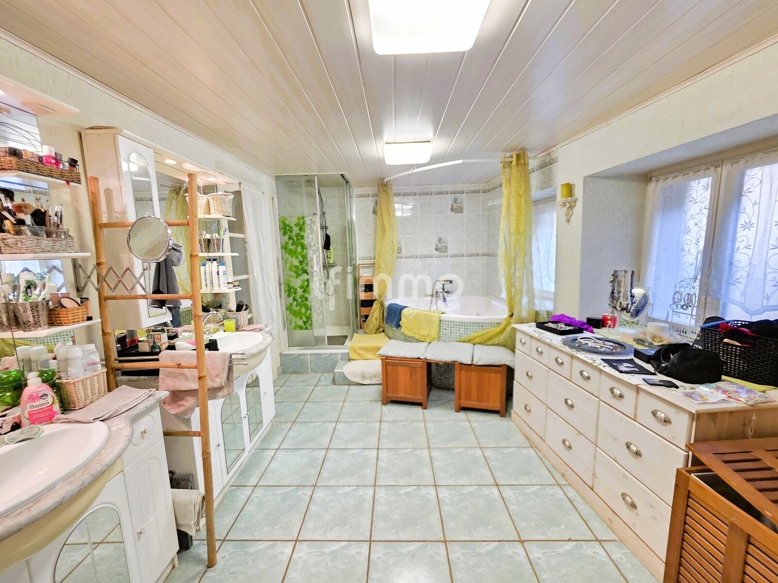 Au rez-de-chaussée, la maison se compose d’une cuisine équipée, d’un salon-séjour avec accès direct à la terrasse, d’une salle de bains complète avec douche, baignoire et double vasque, d’un WC indépendant, ainsi que d’une buanderie et d’une cave.