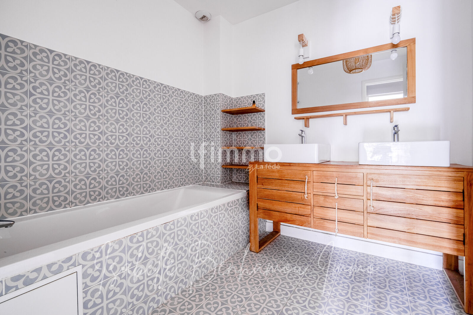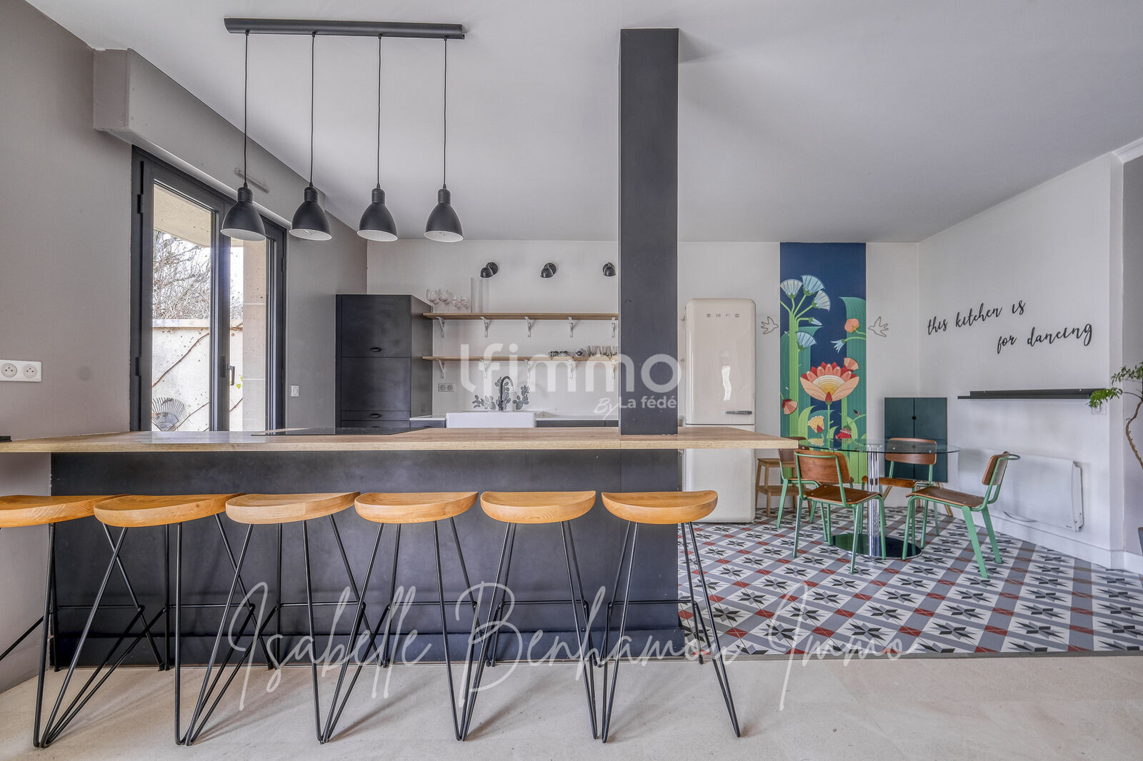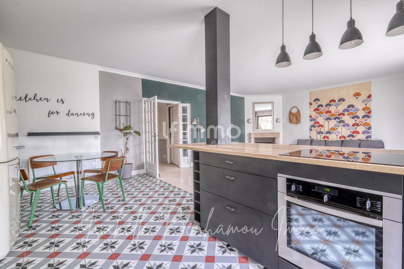 La cuisine, aménagée et équipée s'intègre harmonieusement à l'espace de vie qui s'ouvre naturellement sur une terrasse et un beau jardin privatif de 150m2 dans un écrin de verdure, véritable valeur ajoutée de ce bien.