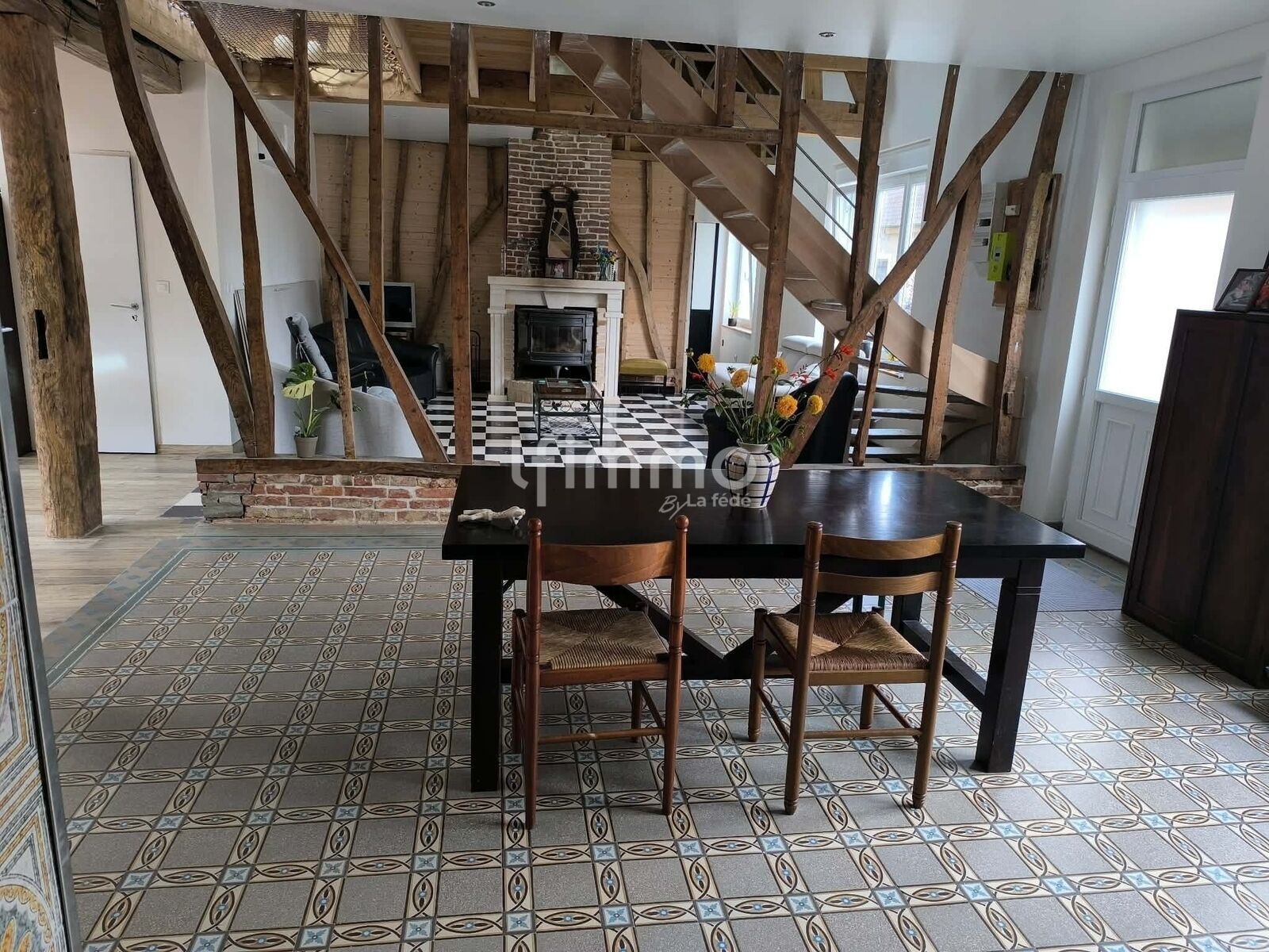 D’une surface habitable d’environ 189 m², la maison séduit dès l’entrée par ses matériaux de qualité : poutres apparentes, faïence, revêtements élégants, et une superbe cheminée d’époque qui confère une atmosphère unique à l’ensemble.