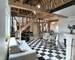 🔸Le cœur de la longère est une vaste pièce de vie de 77 m², baignée de lumière, comprenant une cuisine équipée ouverte sur le séjour, sublimée par un plafond cathédrale avec charpente apparente, offrant un volume et une perspective remarquables.