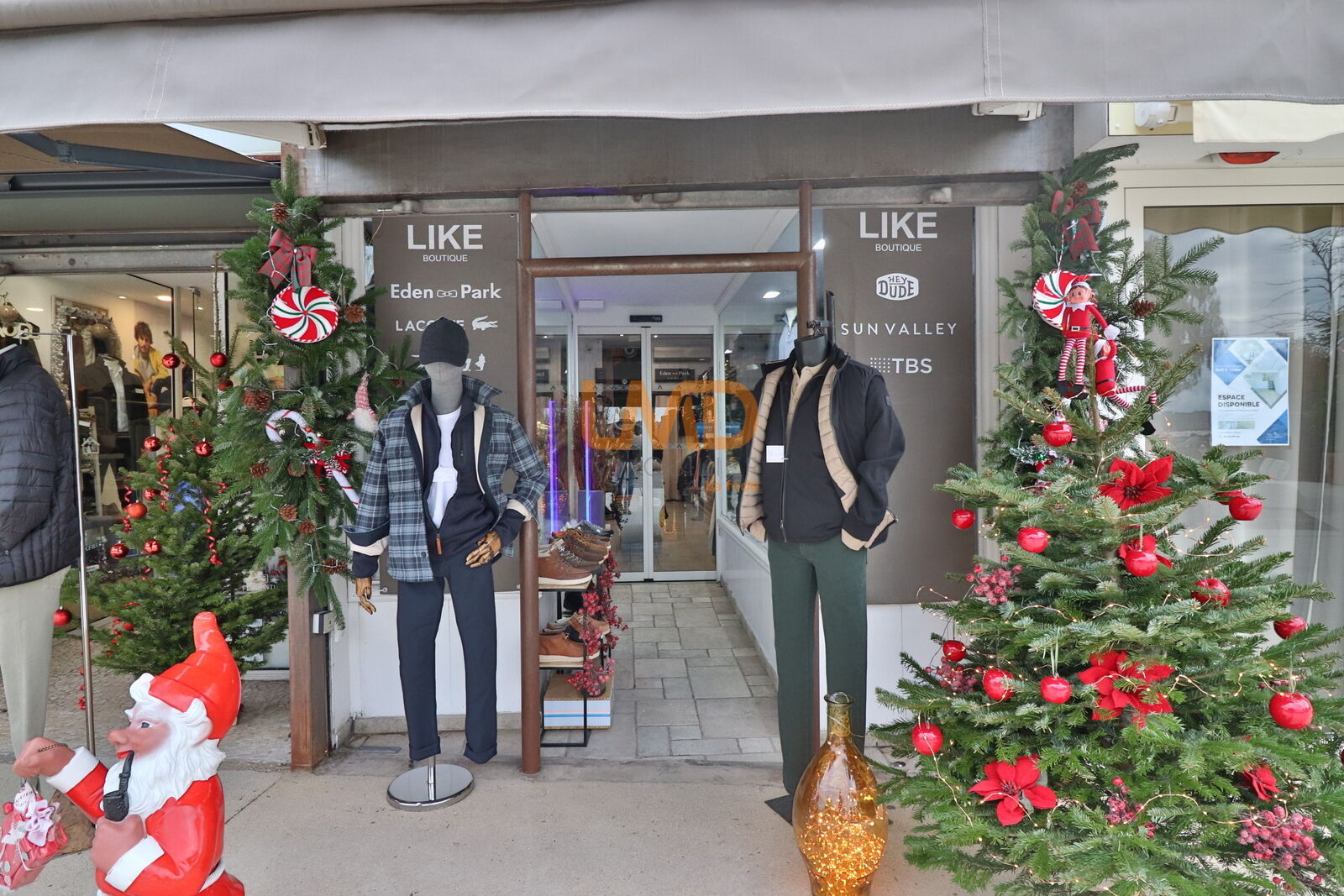 Double vitrine toute hauteur de 9m de linéaire, dont intérieure, double rideaux métalliques électriques sécurisés dont un ajouré, porte automatique, portique anti-vol, et locaux climatisés.