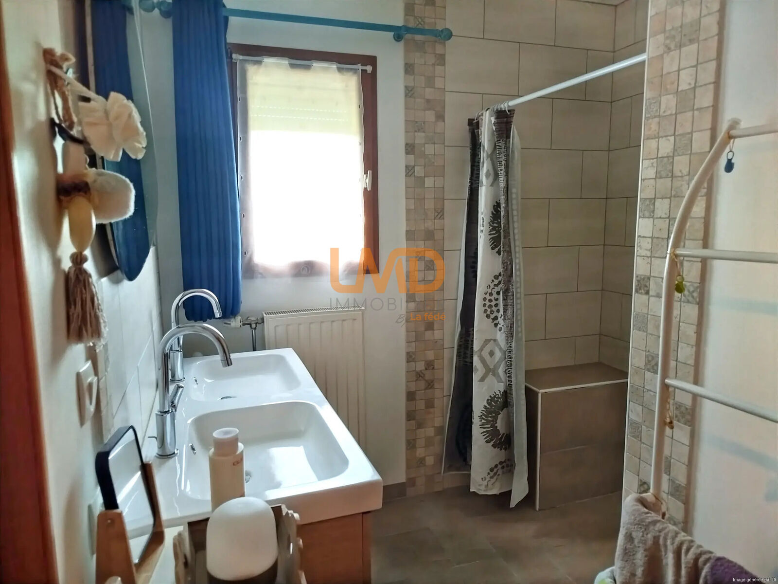 Salle d’eau avec douche à l’italienne, double vasque