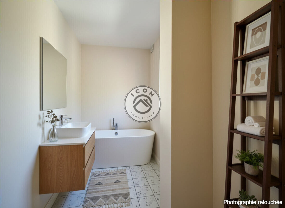 À l’extérieur, une terrasse vous permettra de profiter des beaux jours en toute tranquillité, tandis que le jardin, accessible par une servitude de passage entre la terrasse et l’espace vert reste attenant au bien, offre un cadre agréable pour vos moments de détente ou vos projets de jardinage. Une cave vient également s’ajouter aux prestations, offrant un espace de rangement supplémentaire.