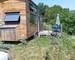 Une tiny house est installée sur le terrain avec un kit photovoltaïque ainsi qu'un chalet en bois contenant la partie technique et buanderie.