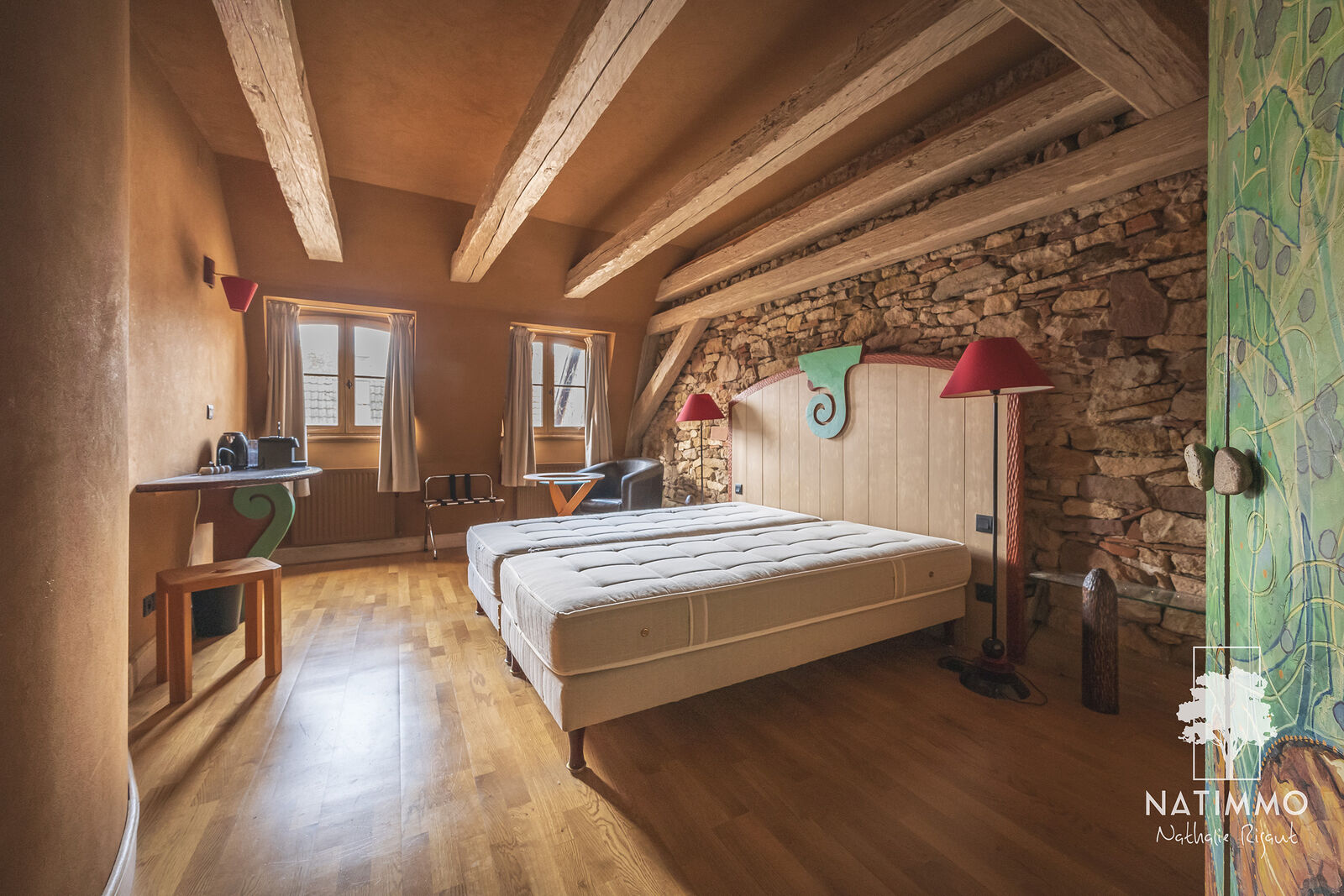 Une cour intérieure fermée, un parking privé et une cuisine professionnelle équipée complètent cet ensemble harmonieux.