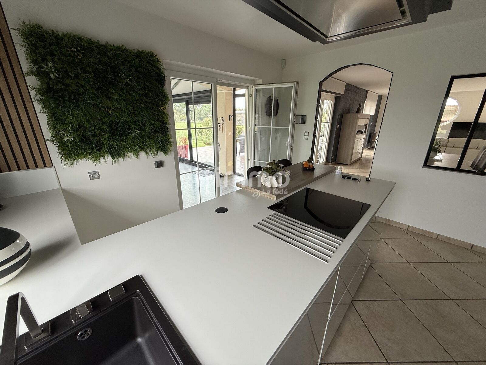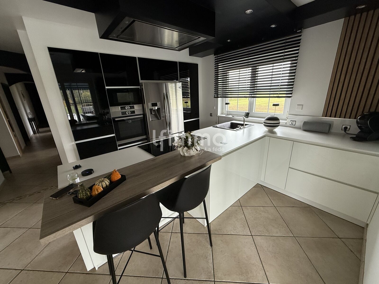 D’une surface habitable d’environ 270 m², la maison s’ouvre sur un vaste séjour lumineux, propice aux moments de convivialité, et une cuisine fonctionnelle offrant un accès direct à une agréable véranda, véritable lien entre l’intérieur et l’extérieur.
