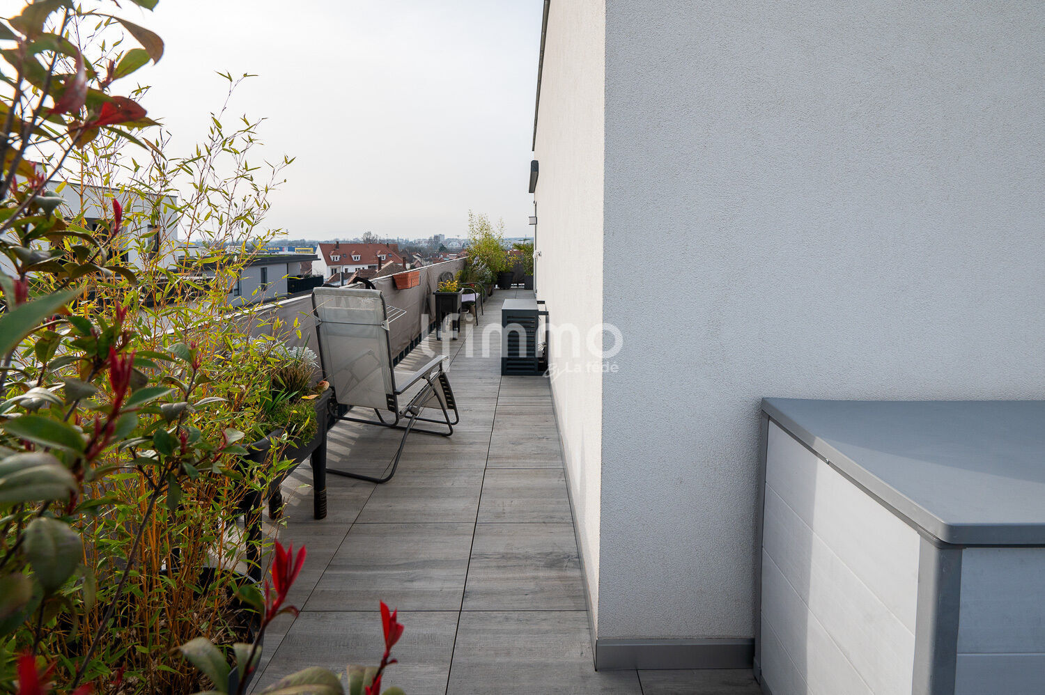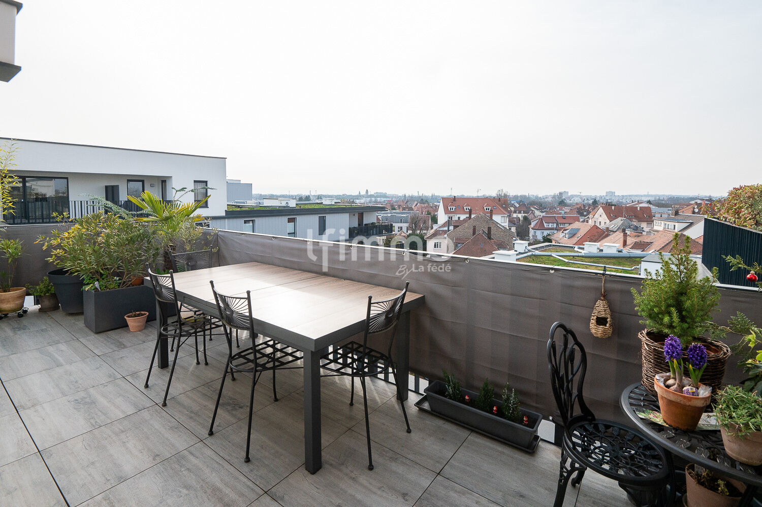 Venez découvrir, dans le nouveau quartier Fischer à Schiltigheim, ce magnifique appartement de 5 pièces de 98 m² environ, en attique, avec une terrasse de plus de 58 m². Vous ne pourrez pas rester insensible au charme de cet appartement qui vous offre tout le confort, de très belles prestations et une vue imprenable. Sa très agréable pièce à vivre, avec cuisine ouverte très bien équipée, est baignée de lumière et vous donne accès directement à son immense terrasse triple orientation. Un store électrique vous permet de moduler la luminosité et de créer une pièce cosy à l’extérieur en plus.