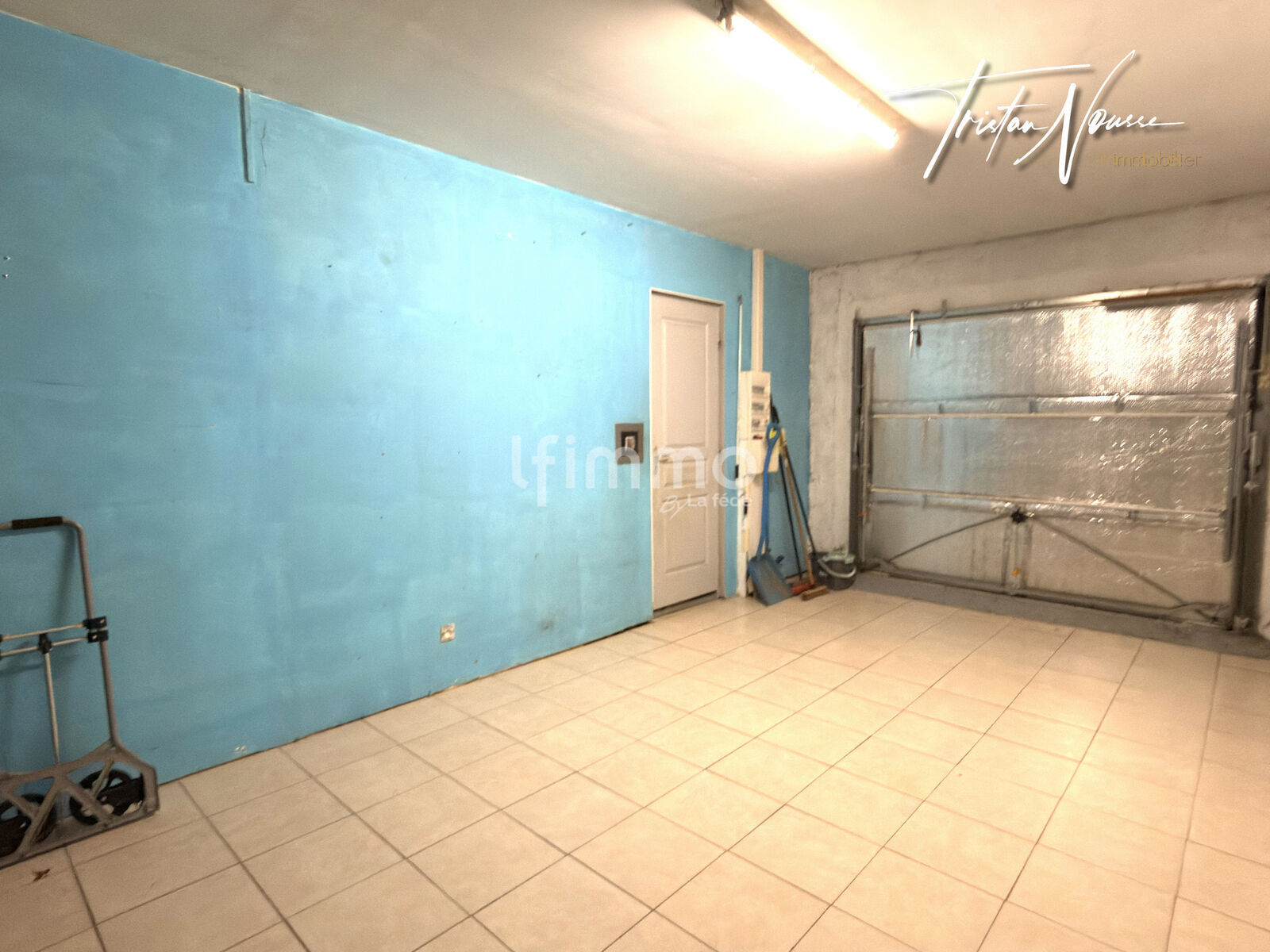 Un garage de 23 m² avec mezzanine de rangement apporte un espace de stockage complémentaire appréciable.
