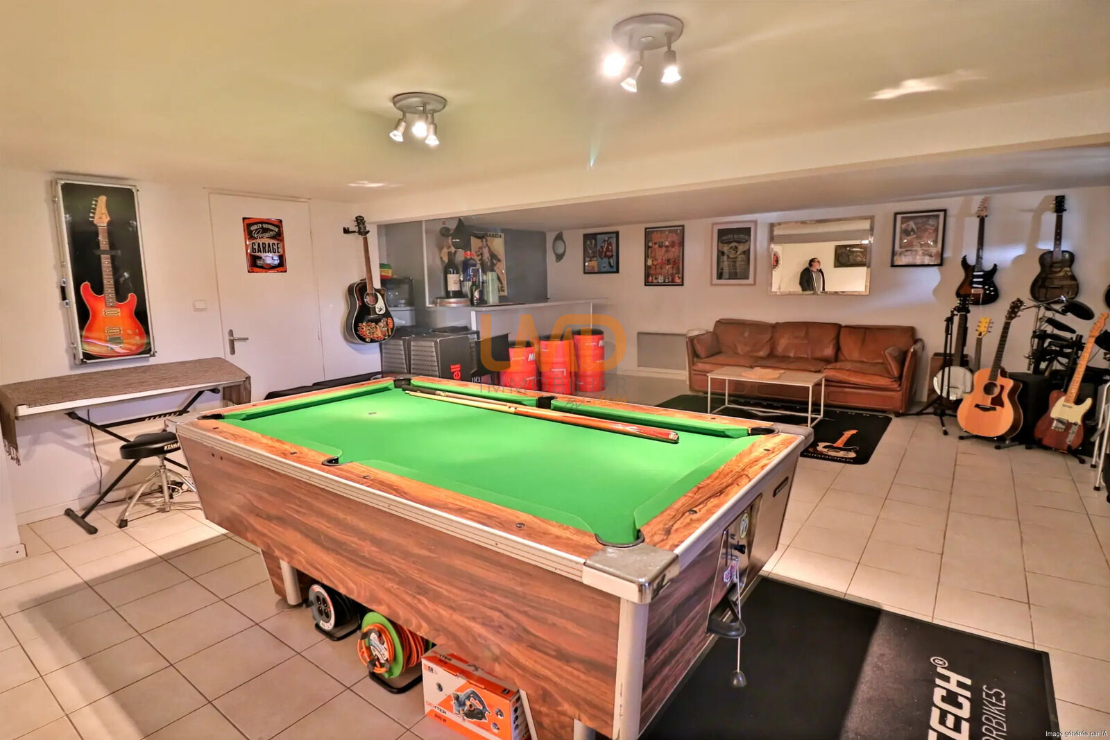 En rez-de-jardin, une très grande salle de jeux de plus de 30m2 avec bar et dégagements, qui peut être transformée en suite parentale, avec accès extérieur indépendant.