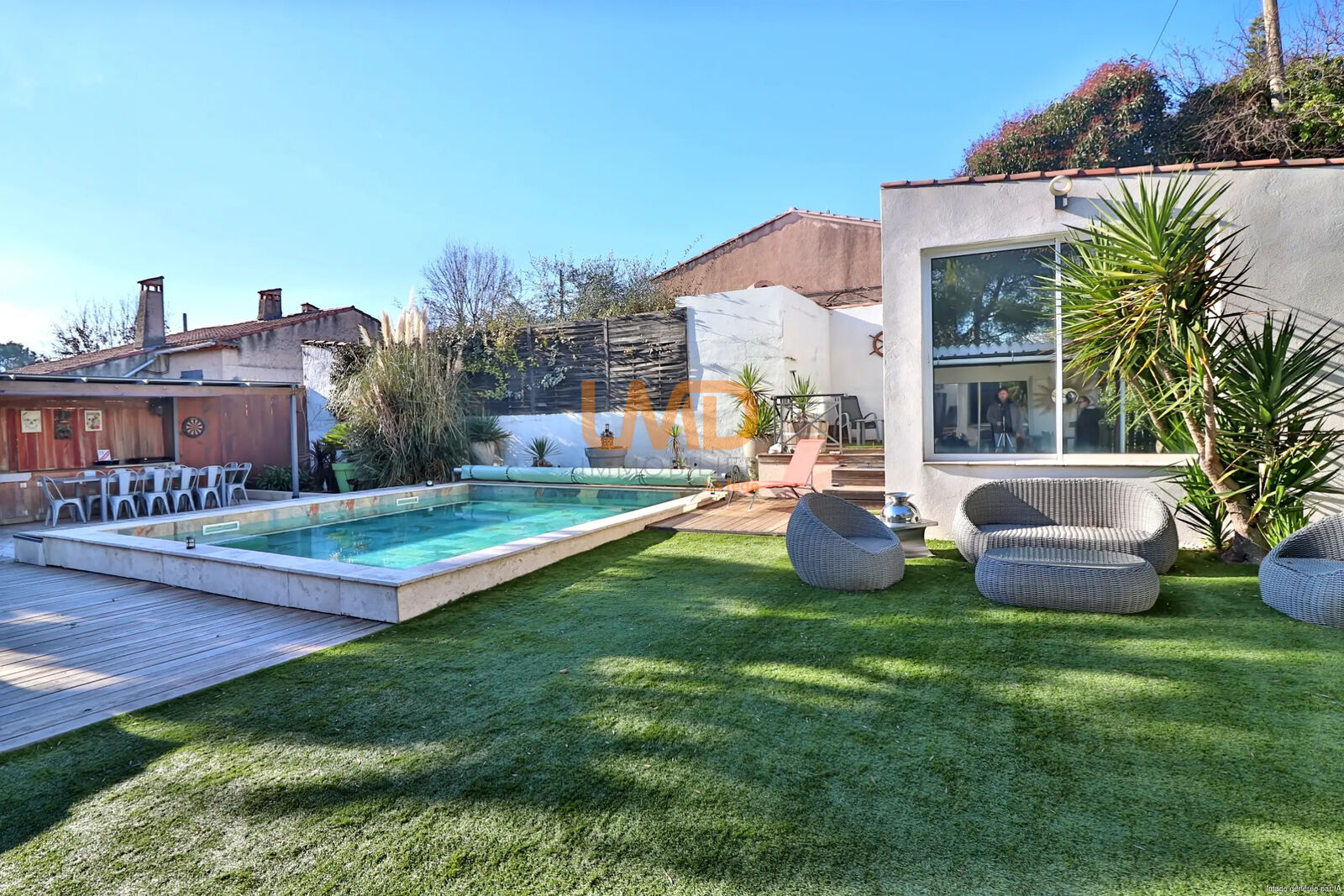 A Marseille 11ème, dans les quartiers très recherchés des Camoins et des Accates, nous vous proposons cette maison ancienne entièrement rénovée au charme certain, de plus de 200m2 de surface totale, avec ses 3 chambres, son studio indépendant, sur un terrain de 650m2 au calme absolu.