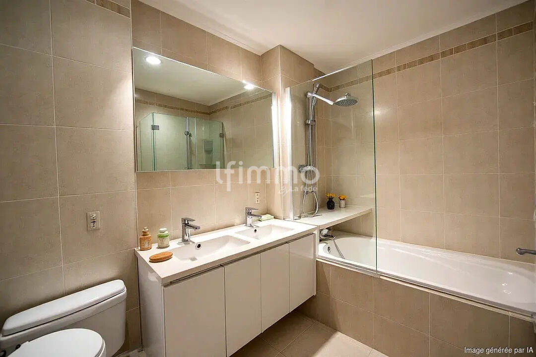 Situé en lot arrière, au calme absolu, cet appartement se compose d’une vaste entrée avec placard donnant sur un double séjour de 33 m² avec une clim réversible (possibilité de créer une 4ᵉ chambre), ouvert sur un balcon exposé plein sud, équipé d’un store.