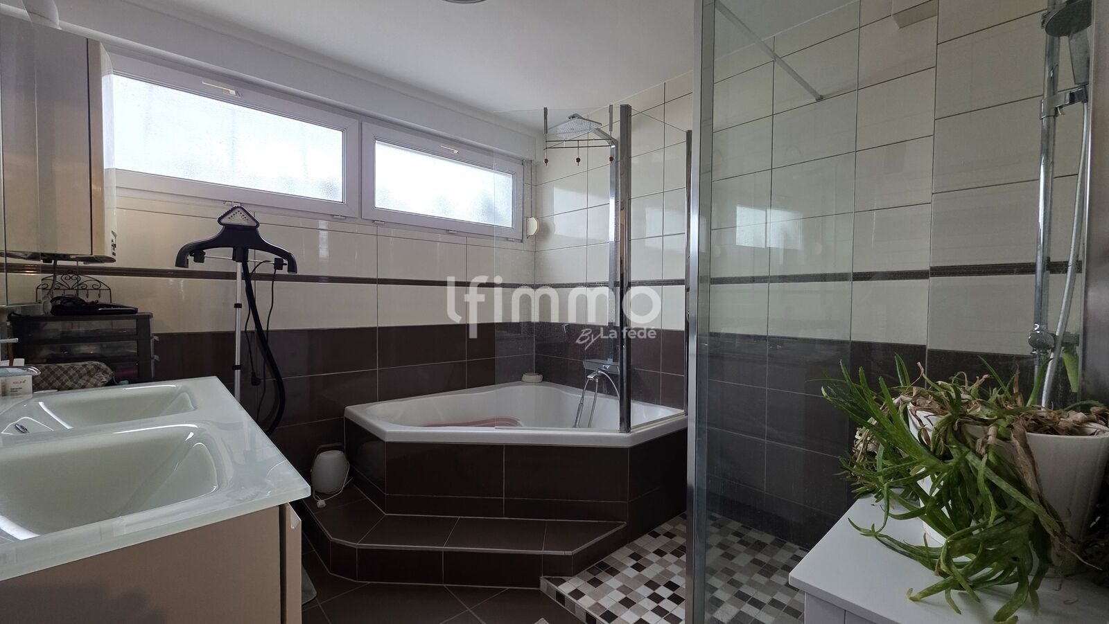 Salle de bain spacieuse avec baignoire et douche à l’italienne