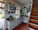 La pièce de vie traversante avec poutres apparentes et cheminée offre un espace chaleureux et ouvert sur l’extérieur. La maison comprend une cuisine indépendante, quatre chambres réparties entre le rez-de-chaussée et l’étage, une salle d’eau et un WC.