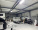 -un hall à structure métallique de 200 m2 avec eau, WC, courant triphasé 400V, portail électrique 3X3m, sol en béton lisse.