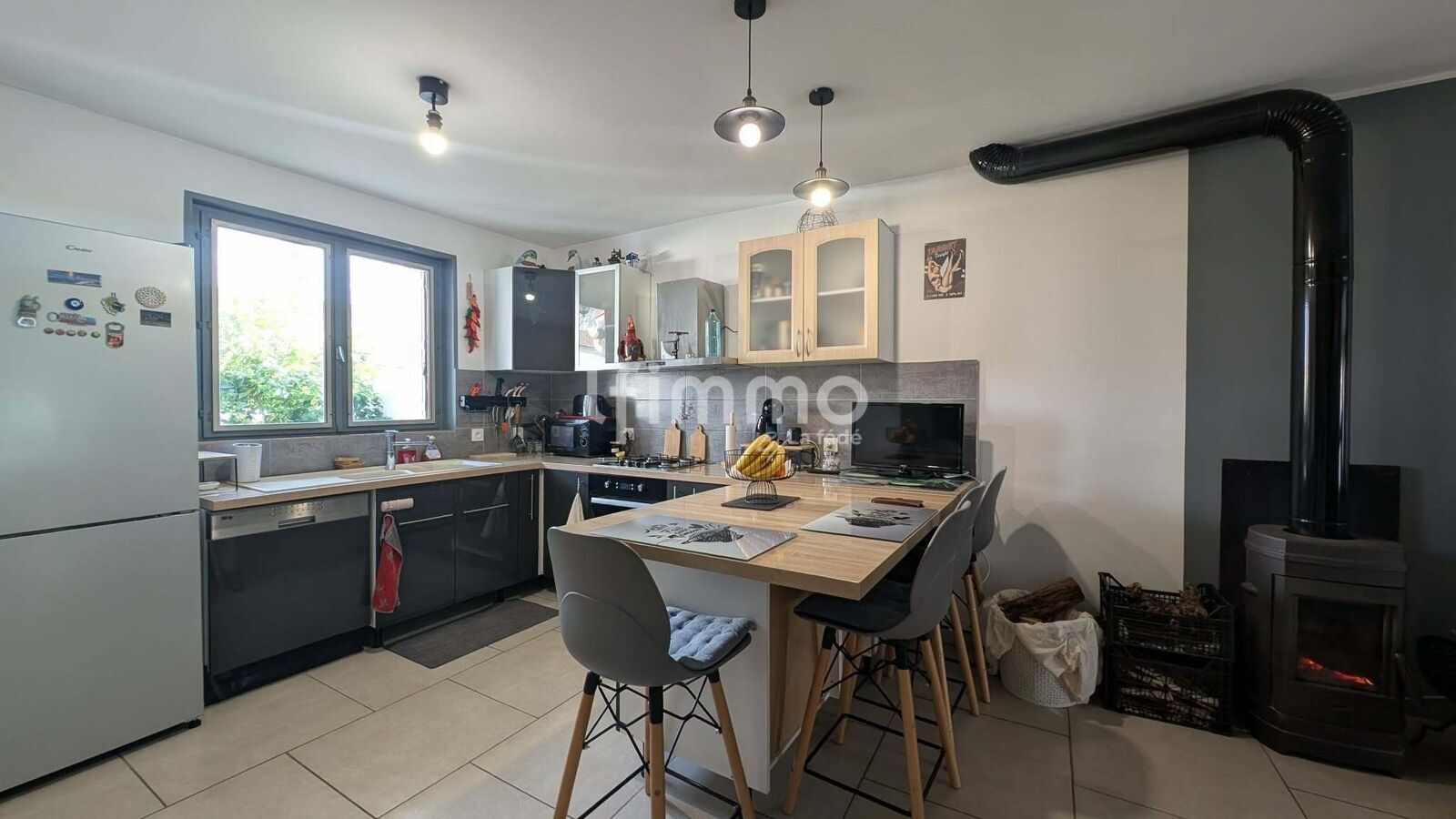 Pièce de vie avec cuisine ouverte équipée, d’environ 23 m²