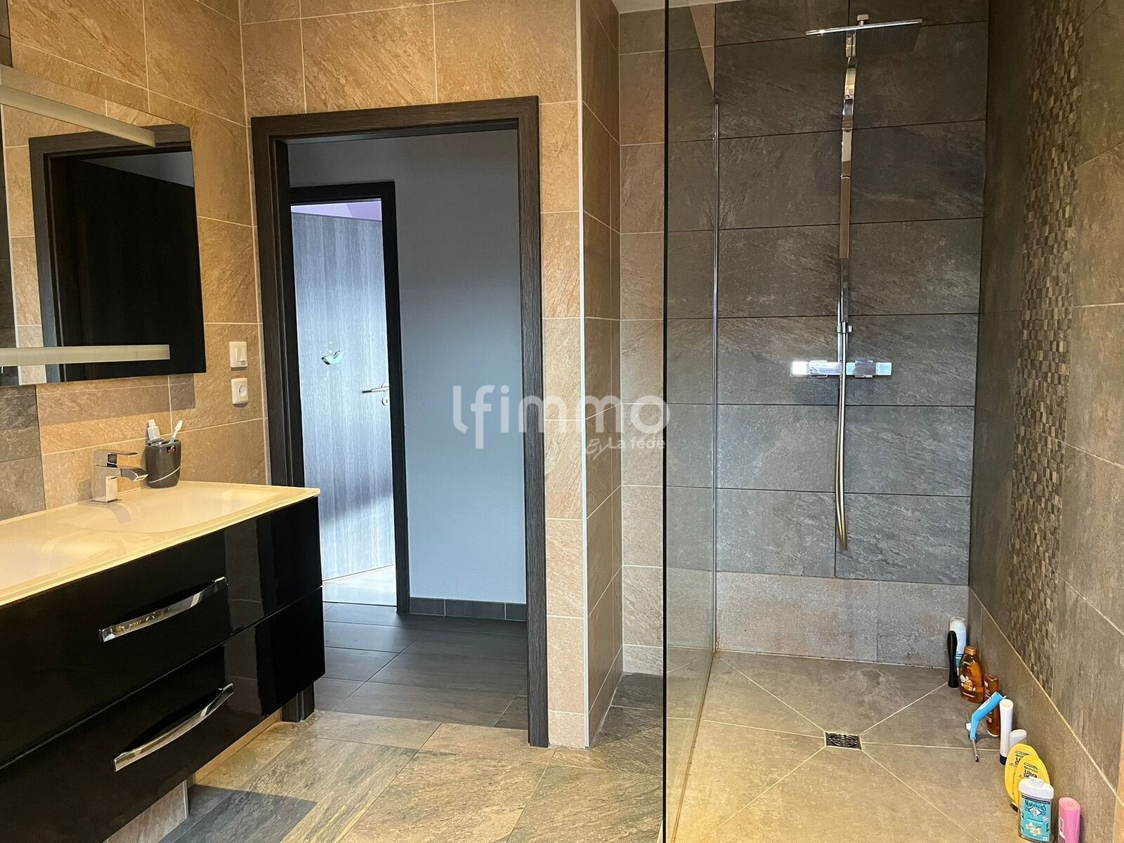 -Une salle d'eau avec baignoire, douche à l'italienne et WC.