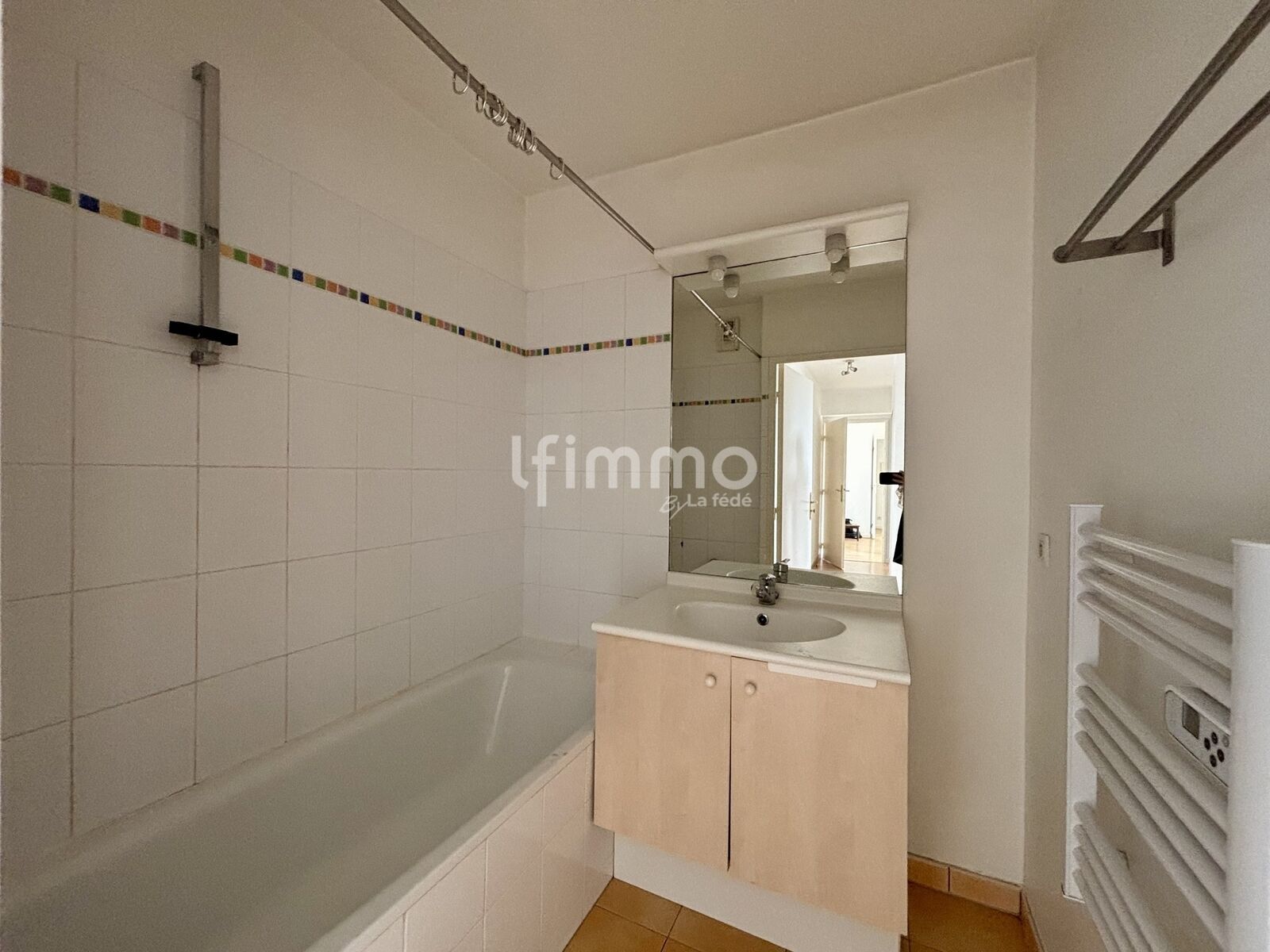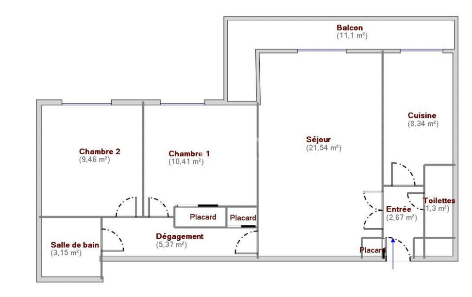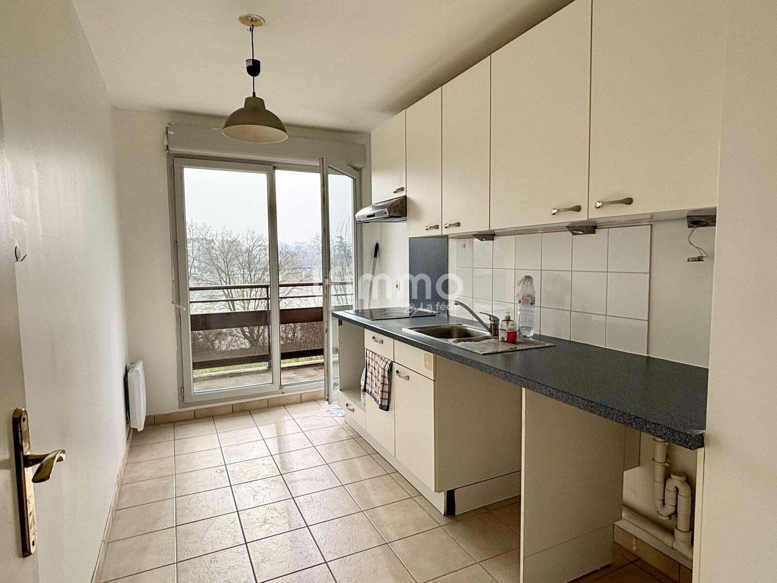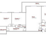 L’appartement se compose de trois pièces principales, dont deux chambres avec rangements, une salle de bain et un WC séparé. La pièce de vie donnant sur le balcon bénéficie d’une luminosité naturelle grâce à son exposition.