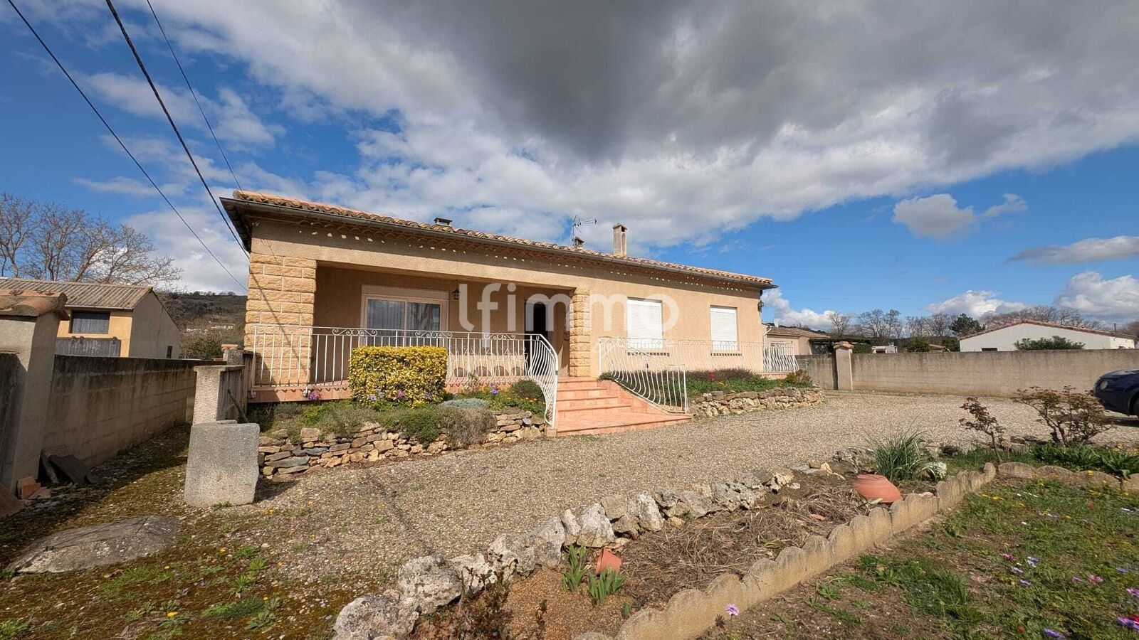 L’accès à la maison se fait par quelques marches en pierre menant à une agréable terrasse, idéale pour profiter des beaux jours.