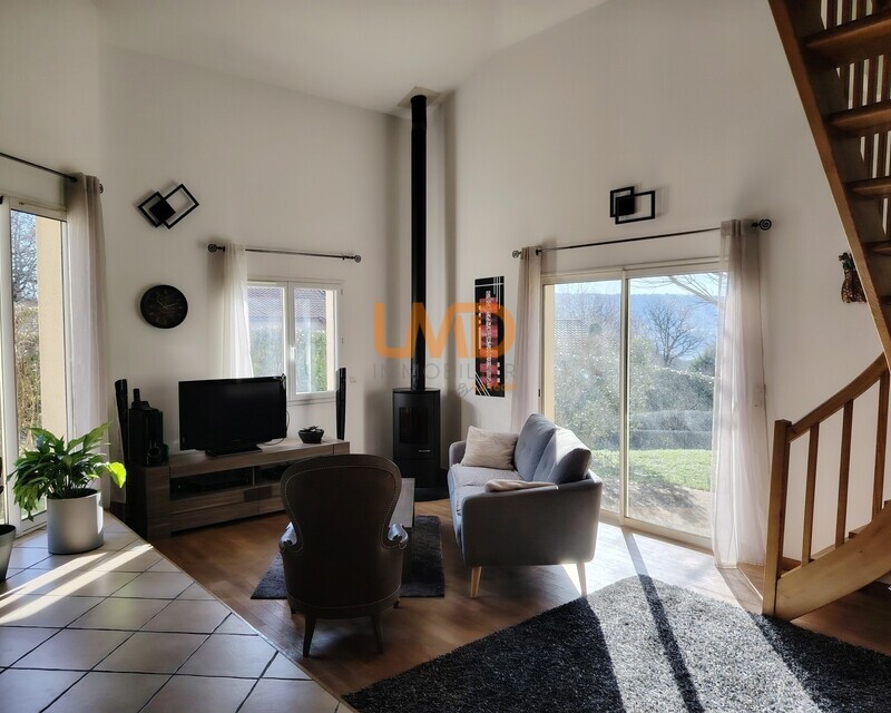 Vous serez séduits par la luminosité, les grands espaces et les performances énergétiques de ce bien (Chauffage au sol par pompe à chaleur (2021) et poêle à bois dans la pièce de vie - Eau chaude par panneaux solaires)