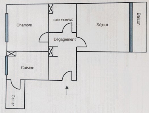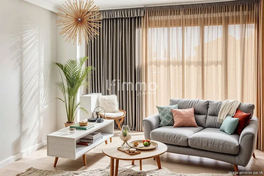 Dégagement (7,11 m²), séjour lumineux (16,50 m²) accès balcon, cuisine et cellier (12,99 m²), chambre (13,73 m²), salle d’eau et WC. Chauffage collectif, chaudière à condensation (2023). Double vitrages PVC. Cave (4,75 m²). Stationnement résidents. ( Photos travaillées avec l'I.A. )