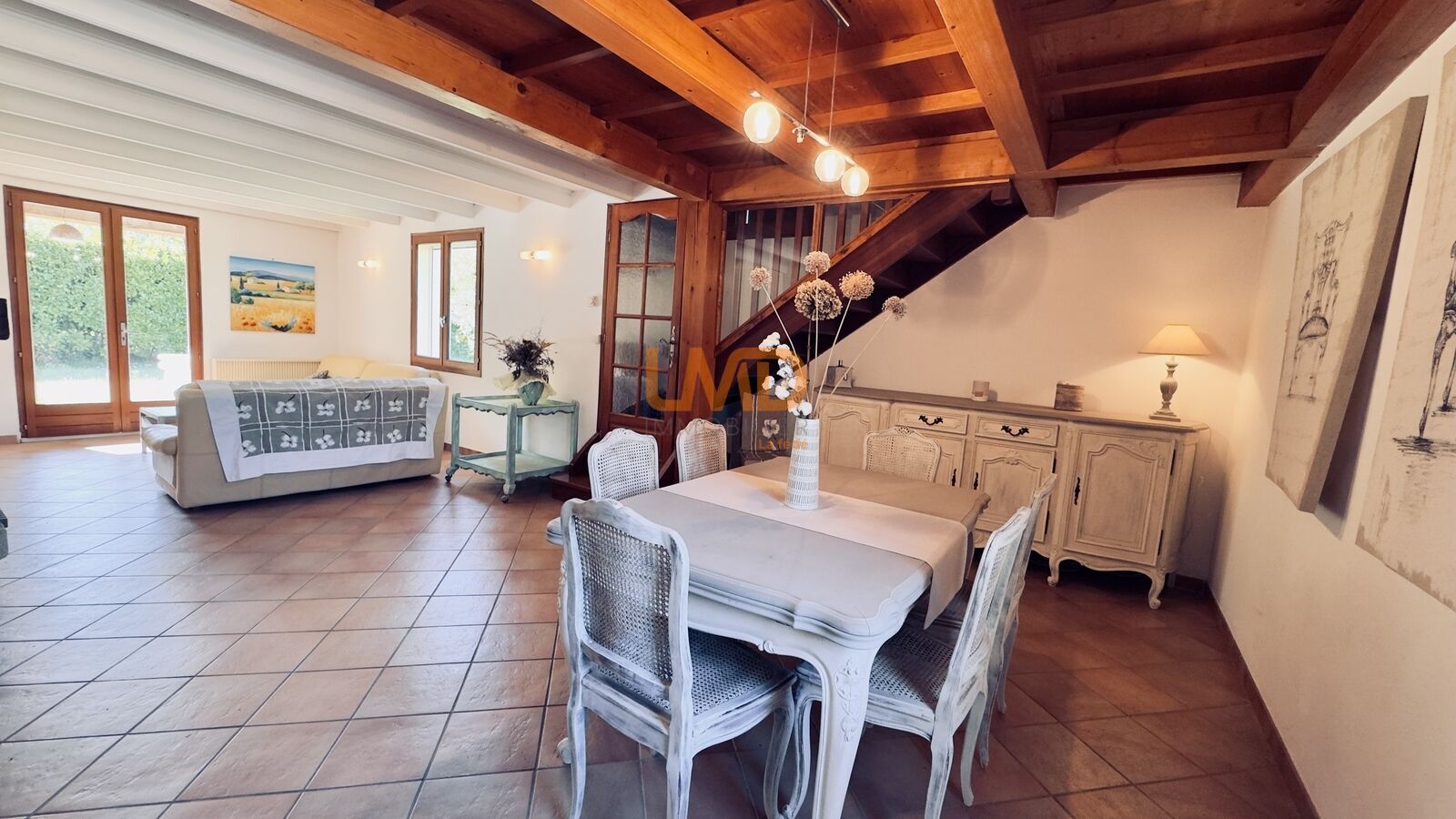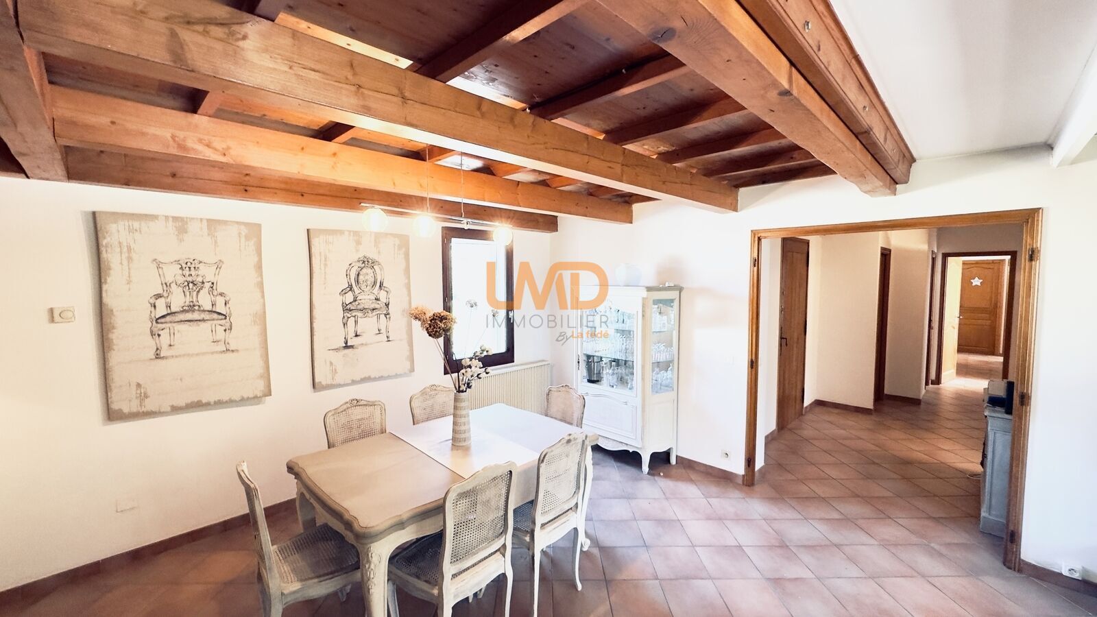 Dès l’entrée, vous découvrez un espace de vie chaleureux composé d’un salon salle à manger de 34 m², ainsi qu’une cuisine indépendante de 18 m², spacieuse et conviviale, idéale pour les repas en famille.