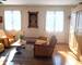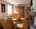 À l’étage : salle à manger lumineuse, salon, cuisine indépendante, chambre, salle de bain et WC.