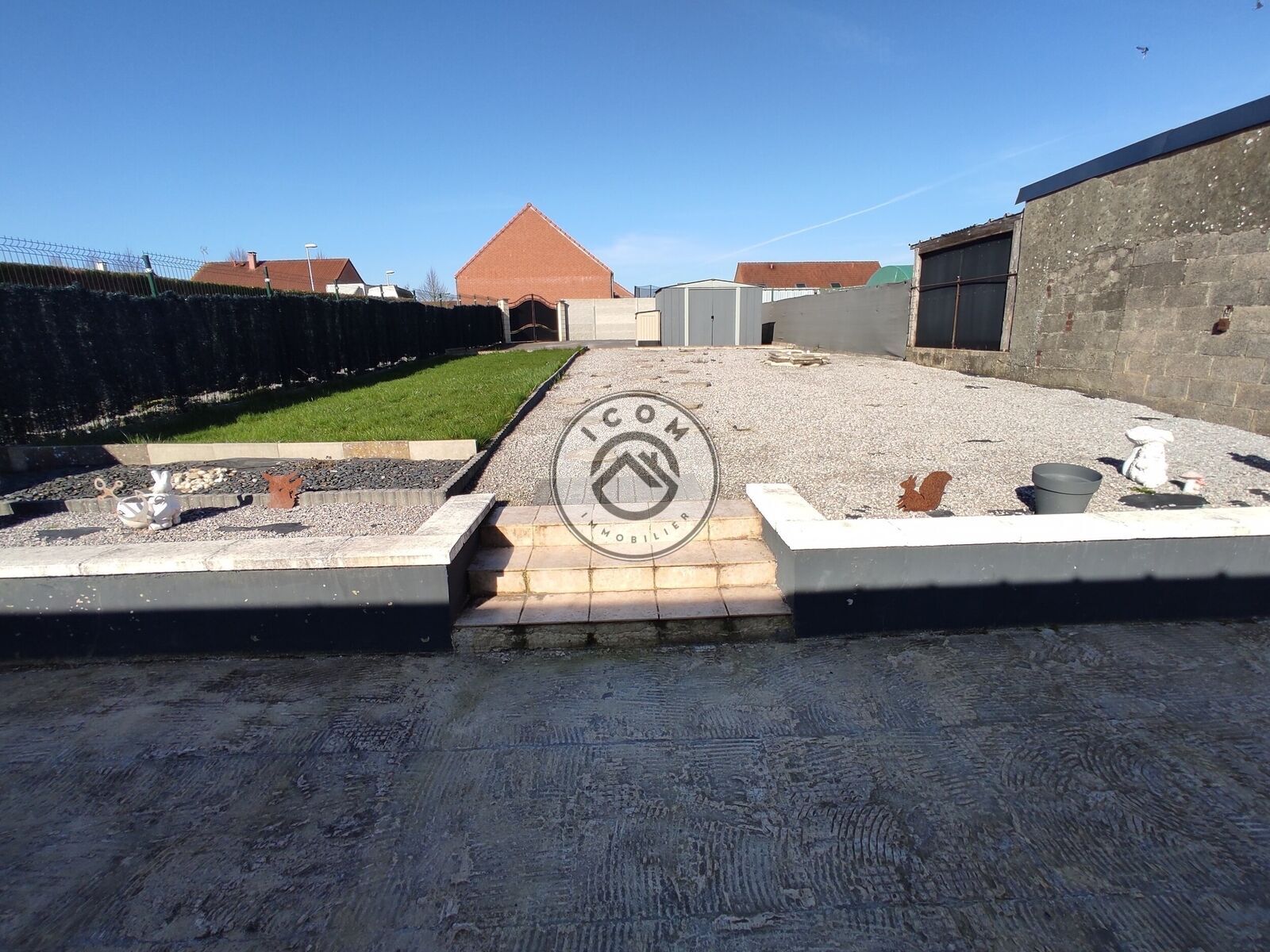 terrain - terrasse - abri en tôle - parking privé - passage sur l'arrière pour garer son véhicule dans la propriété