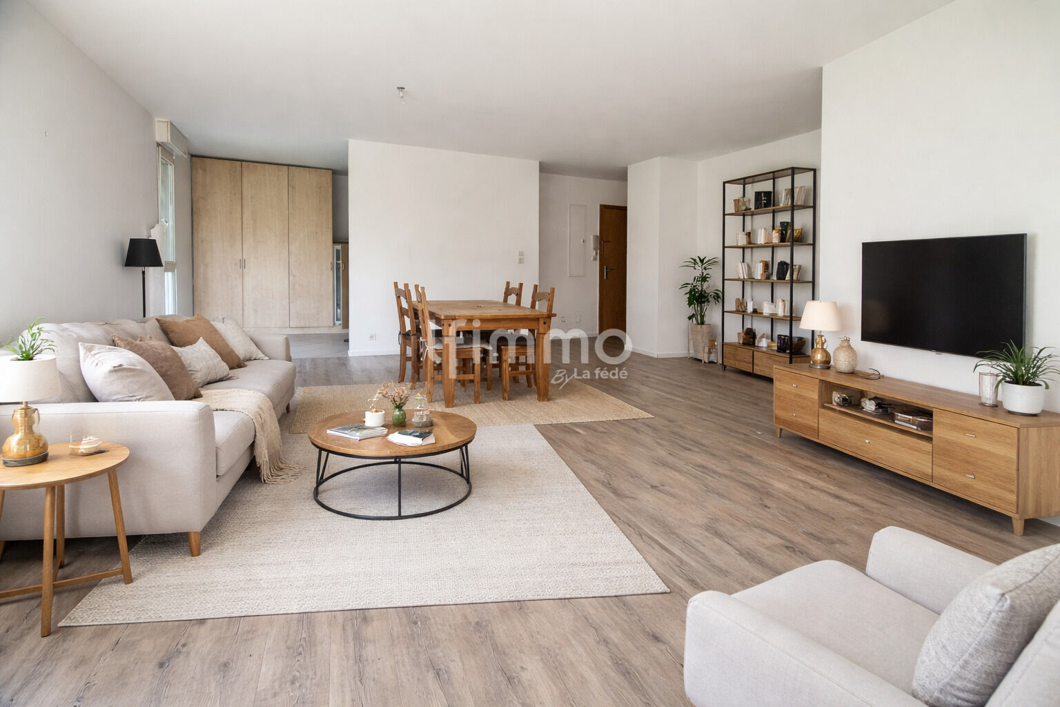 Une belle pièce de vie lumineuse, avec cuisine équipée ouverte, idéale pour partager des moments conviviaux