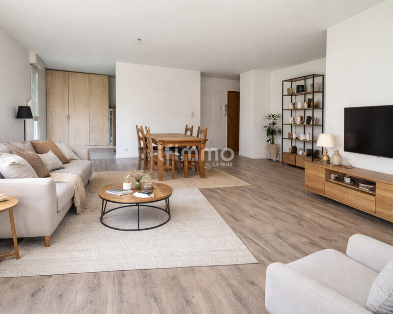 Développant 96 m² habitables, cet appartement aux volumes généreux propose une organisation fluide et fonctionnelle, pensée pour le confort du quotidien.