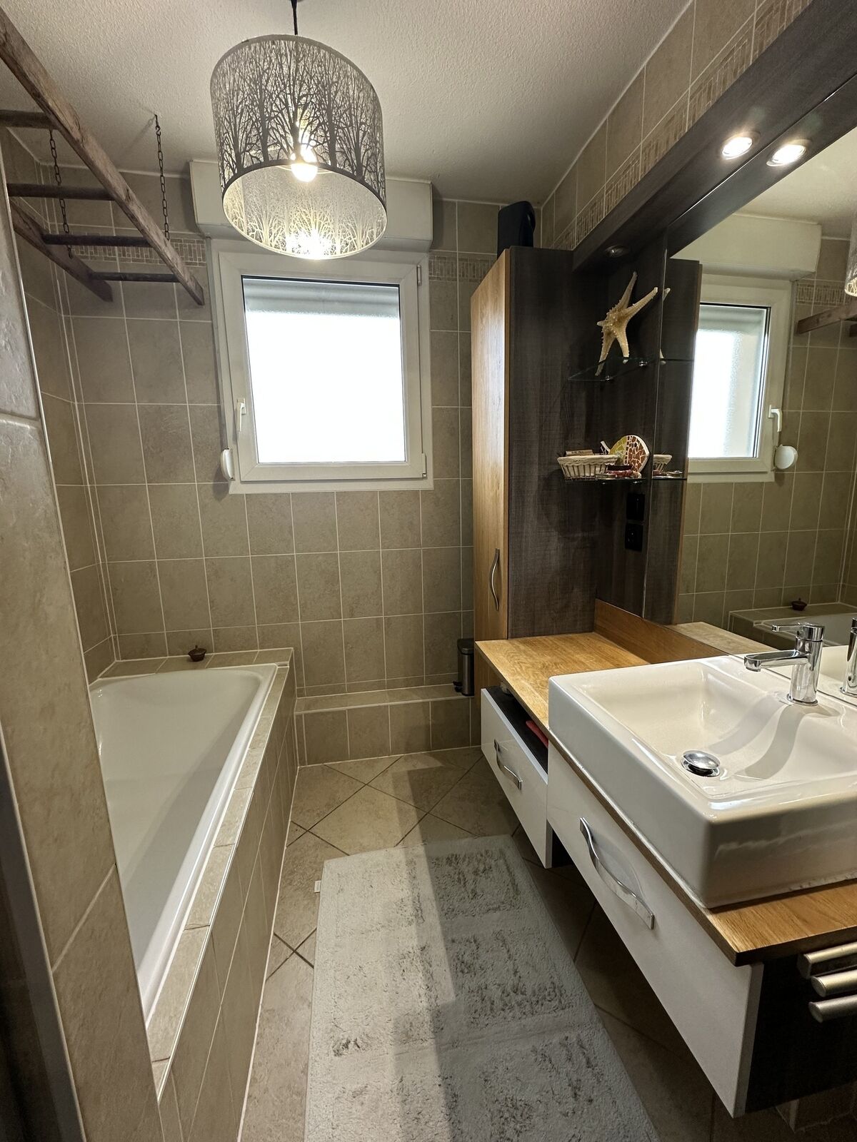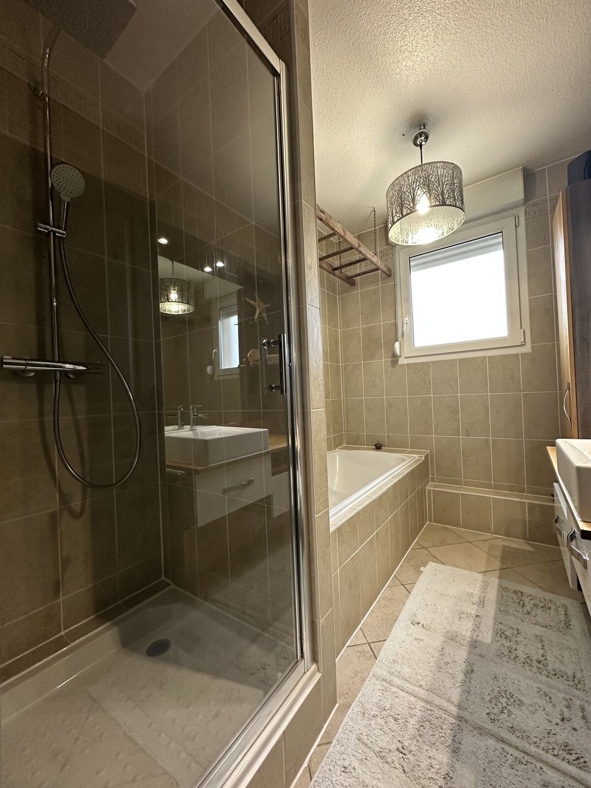 La salle de bain bénéficiant d'une baignoire et d'une douche. Les toilettes séparées apportent un confort supplémentaire au quotidien.