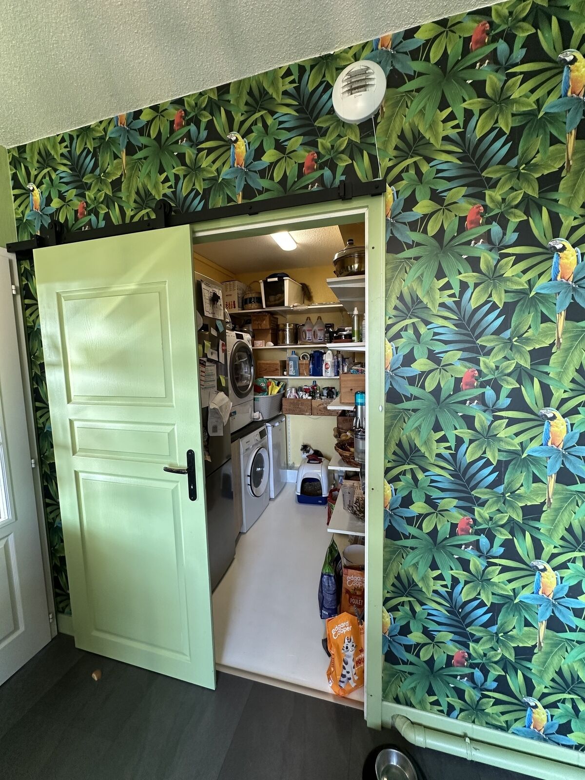 La cuisine, super équipée, invite à la convivialité et à la préparation de bons repas dans un cadre fonctionnel. De la cuisine, nous allons nous rendre dans un grand cellier fermé.