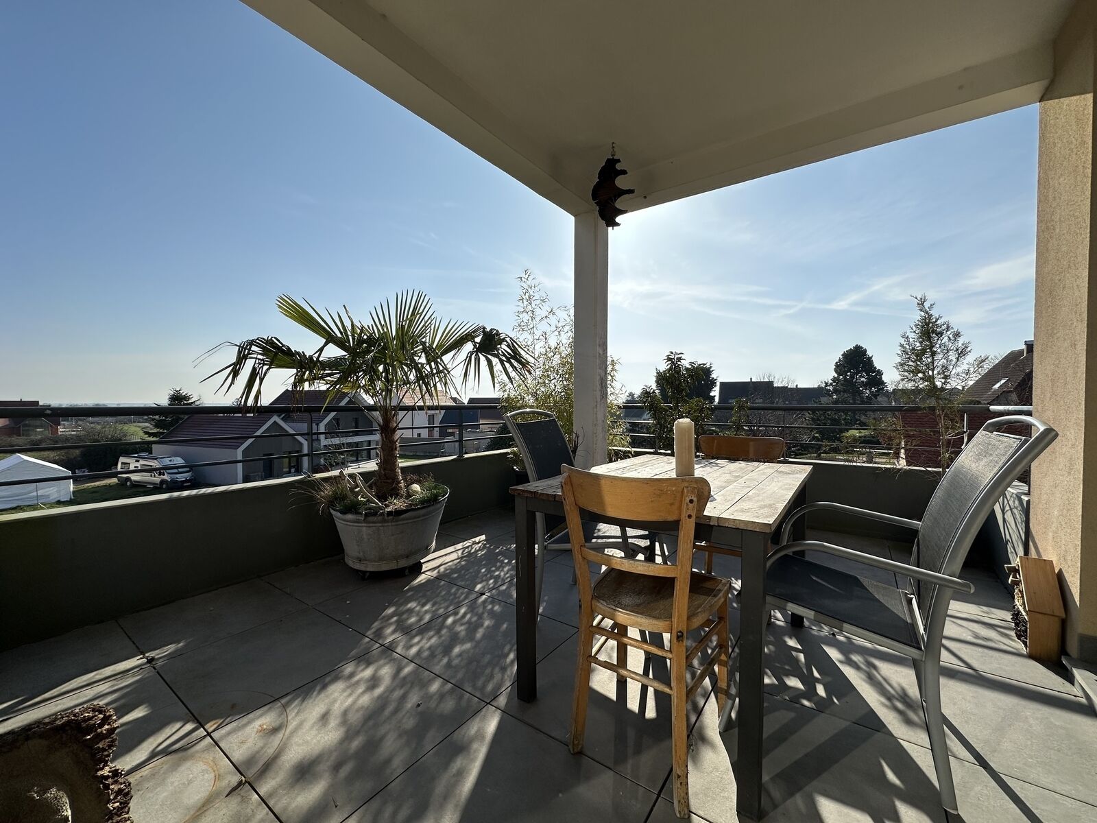 Vous apprécierez particulièrement cette grande terrasse, un véritable espace de vie extérieur où il fait bon se retrouver, ainsi qu'un balcon coté chambre qui complète agréablement cet espace.