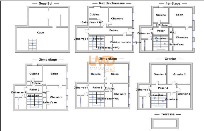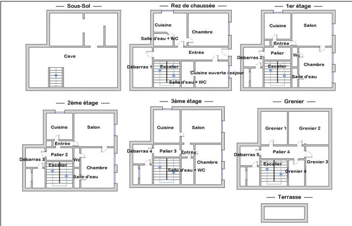 Au dernier niveau, 4 greniers de 64 m² avec une terrasse tropézienne de 7 m² offre une vue dégagée et la possibilité de créer un 6ème lot d'exception (duplex ou appartement de prestige).