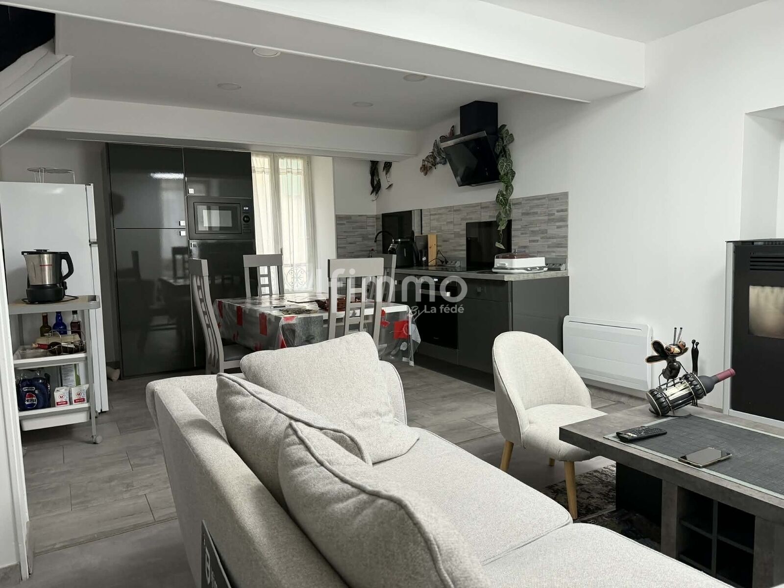 La maison a bénéficié de travaux importants en 2020 : électricité, plomberie et isolation refaites à neuf. Elle dispose de menuiseries en double vitrage, de la fibre optique et d’un chauffage électrique très peu utilisé grâce à un poêle à pellets.