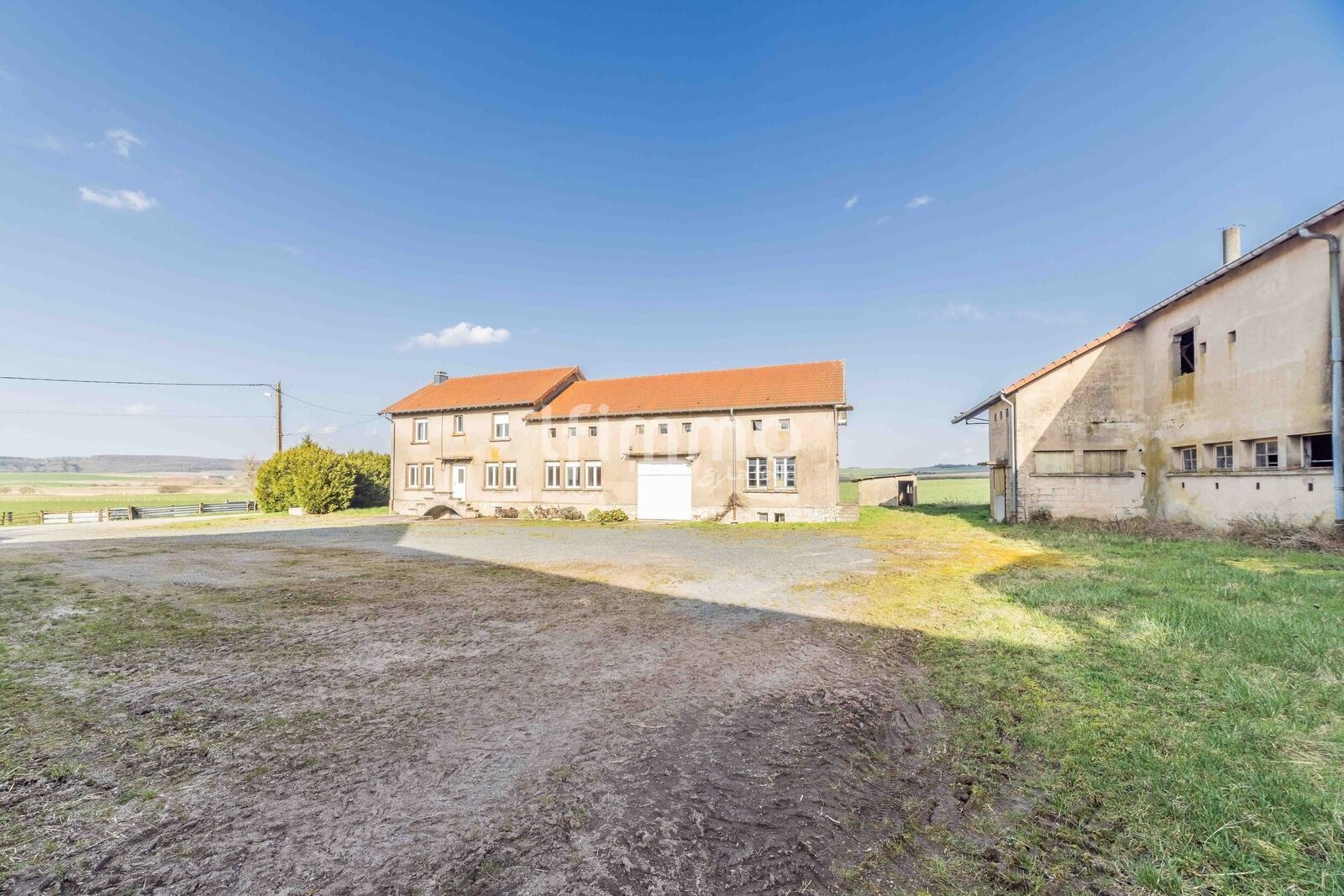 Orientée vers une cour intérieure, nous visualisons facilement d'autres bâtisses de type hangars ou granges, (qui peuvent être vendus également), nécessitant quelques travaux de remise en état.